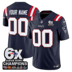 New England Patriots 6-Time Champions Patch Vapor Limited Custom Jersey – All Stitched