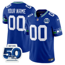 Seattle Seahawks Throwback Vapor Limited Custom Jersey – 50th Anniversary Patch – All Stitched