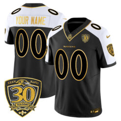 Baltimore Ravens 2025 Gold Vapor Limited Custom Jersey – 30th Anniversary Patch – All Stitched