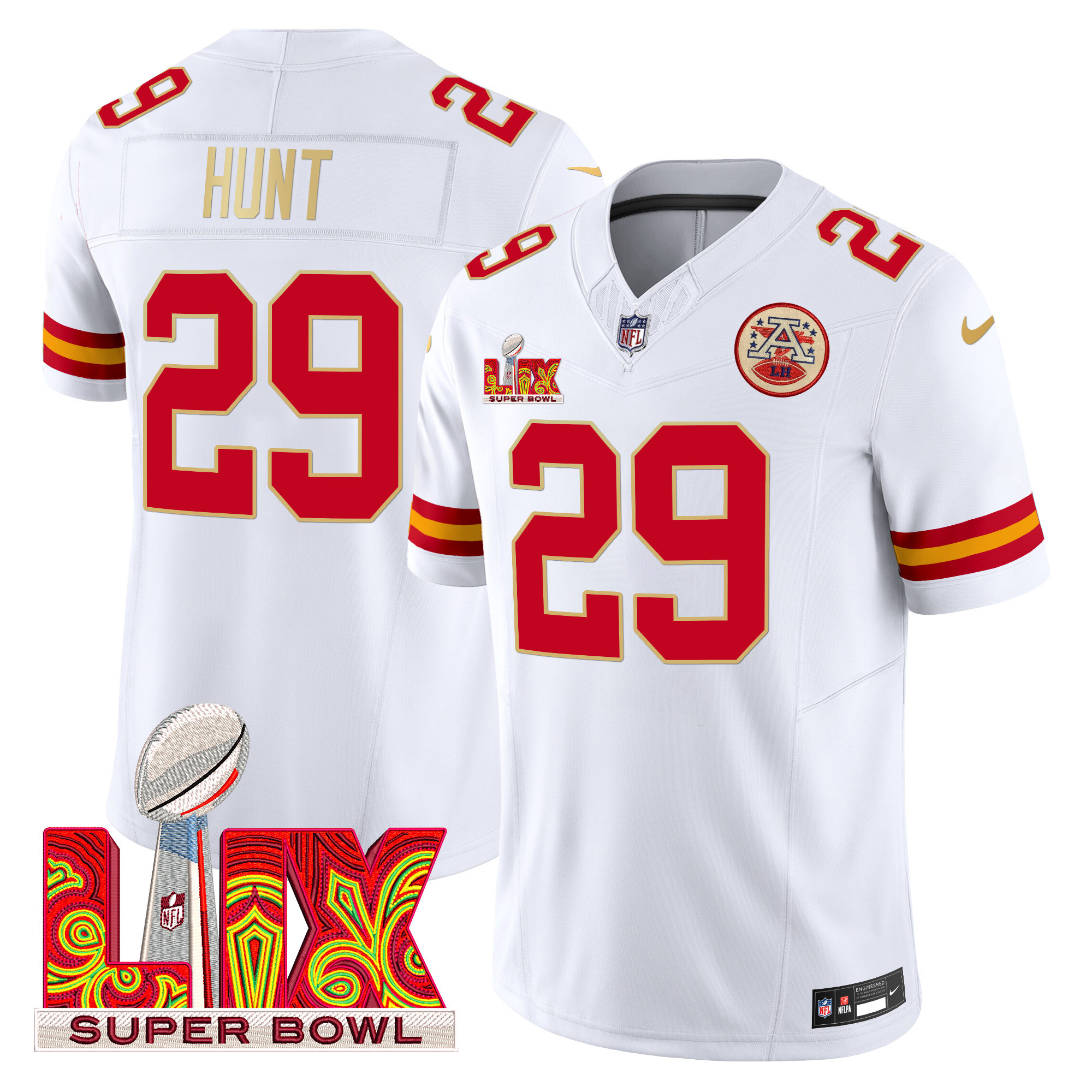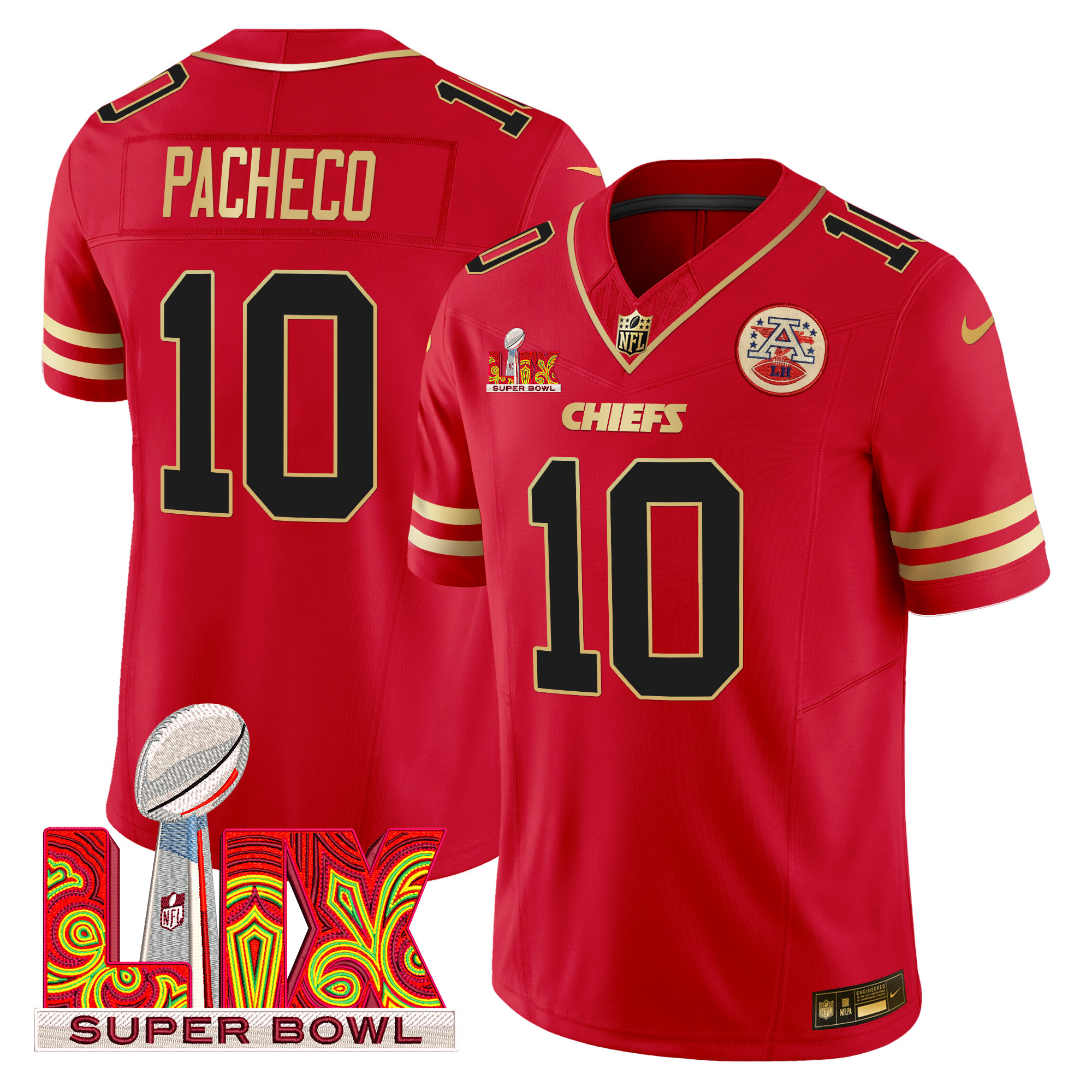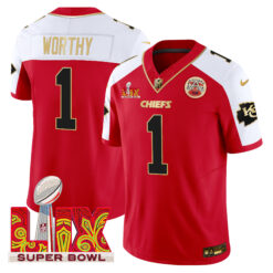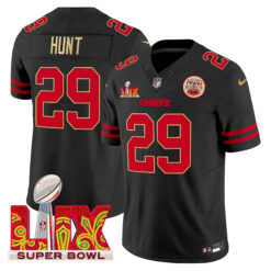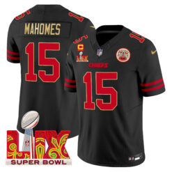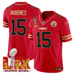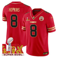 Men’s Chiefs Super Bowl LIX Patch Gold Trim Vapor Limited Jersey – All Stitched