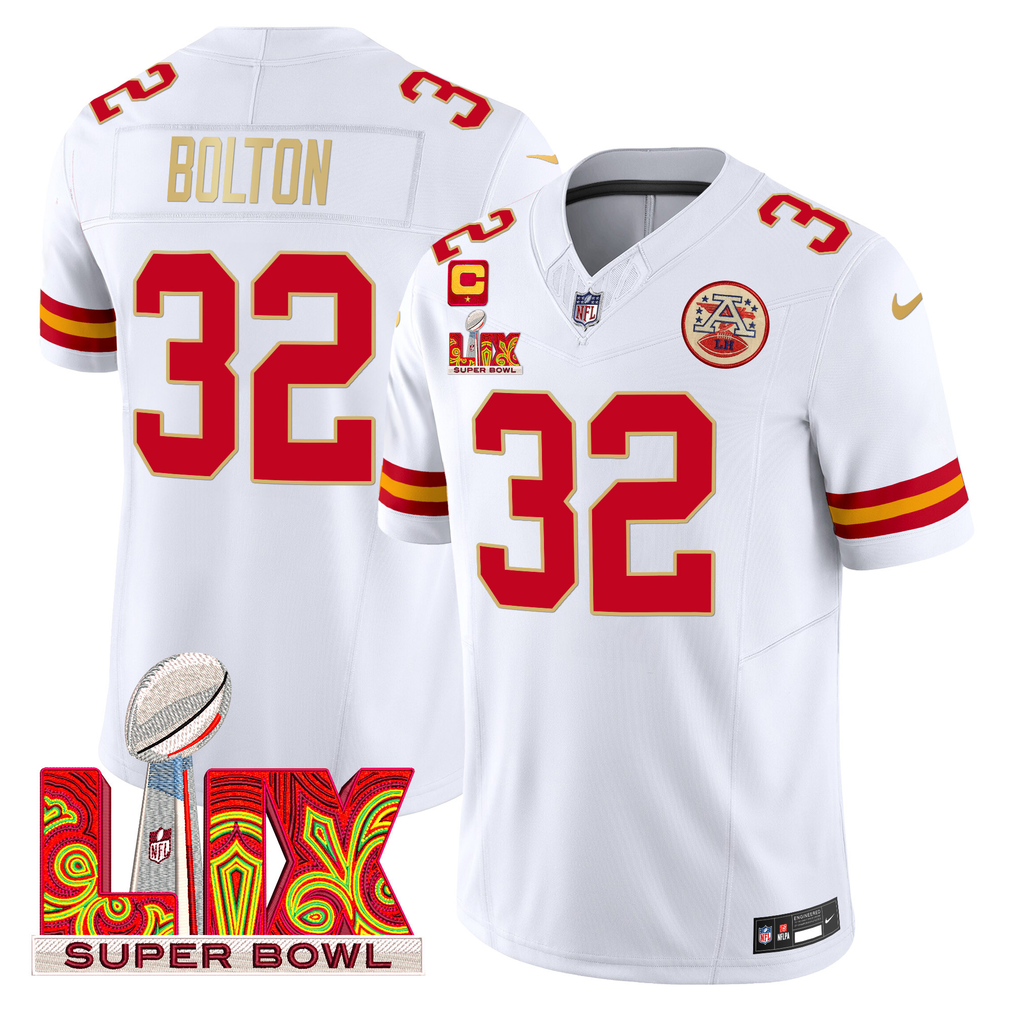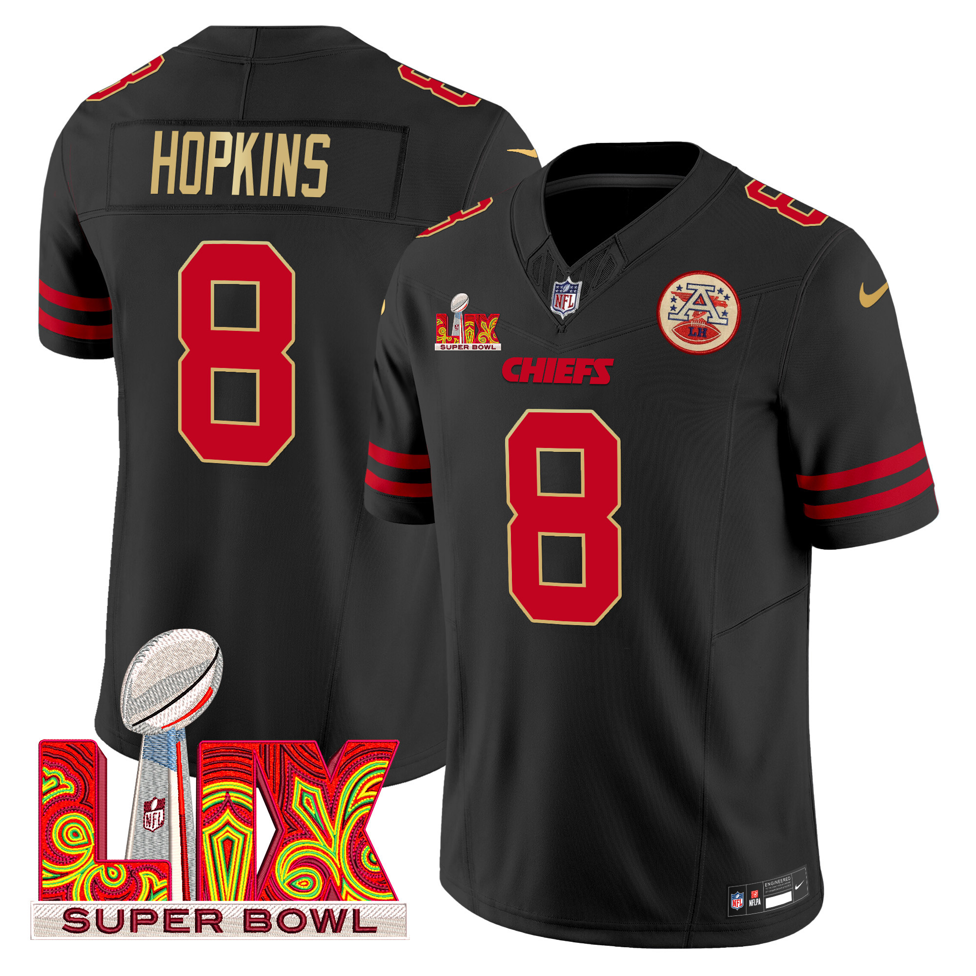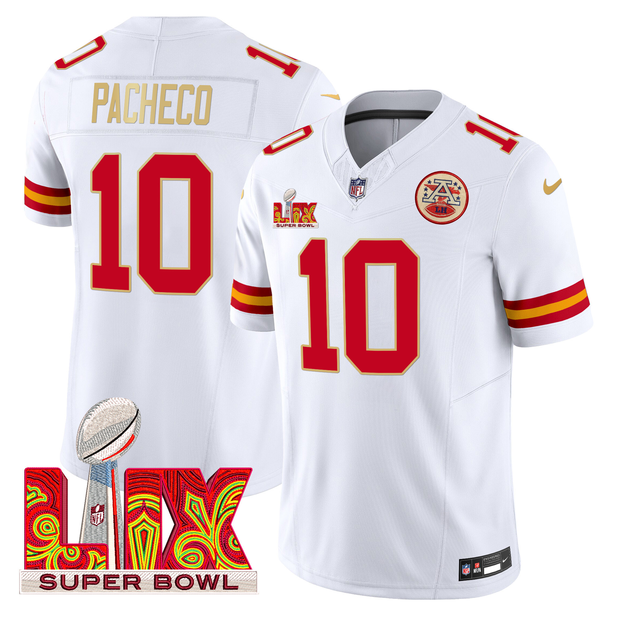 Men’s Chiefs Super Bowl LIX Patch Gold Trim Vapor Limited Jersey – All Stitched