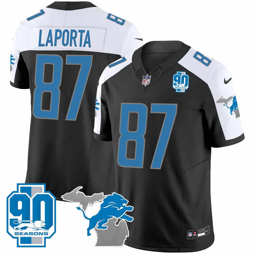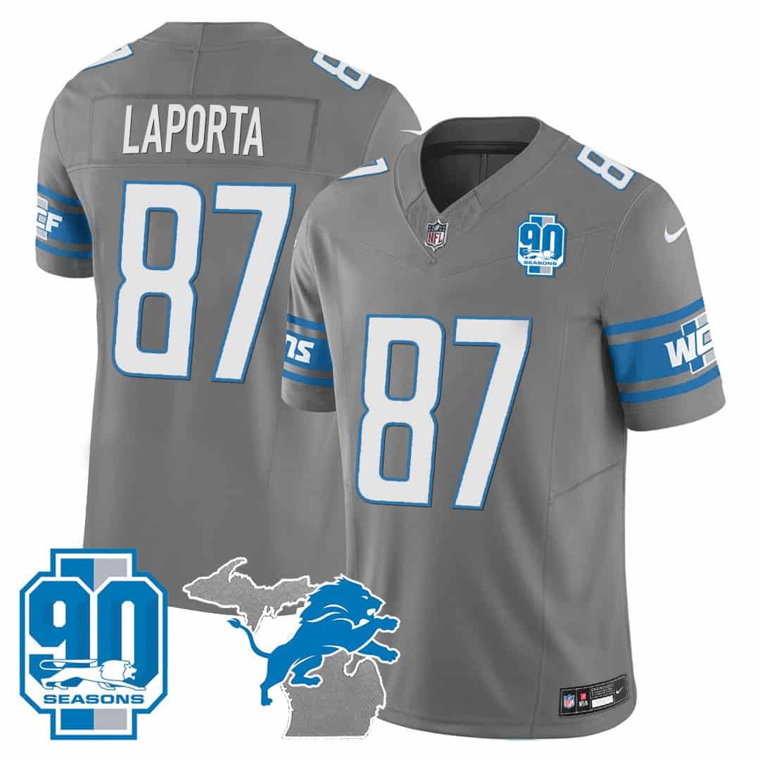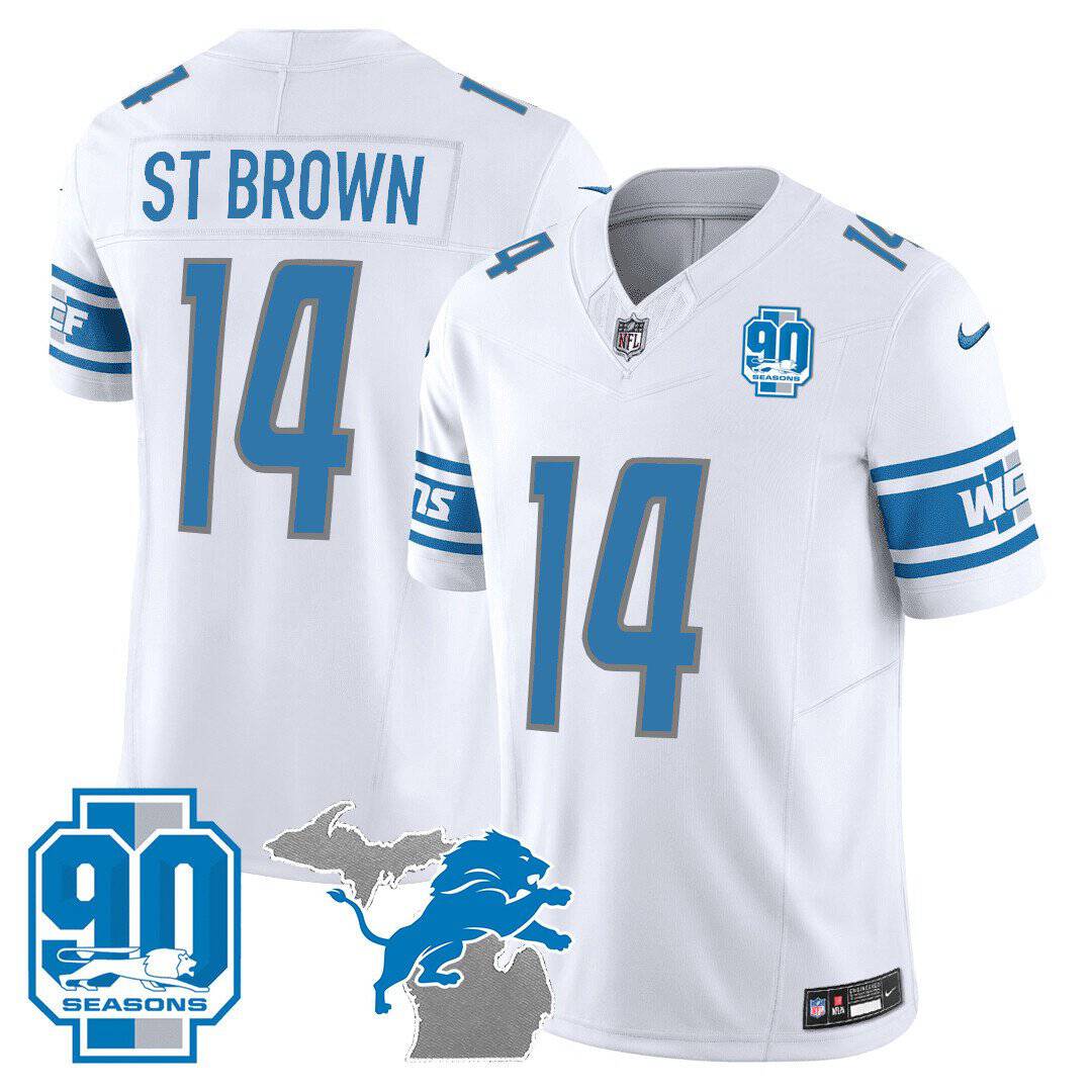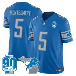 Men’s Detroit Lions 90th Year & Michigan Patch Vapor Jersey – All Stitched