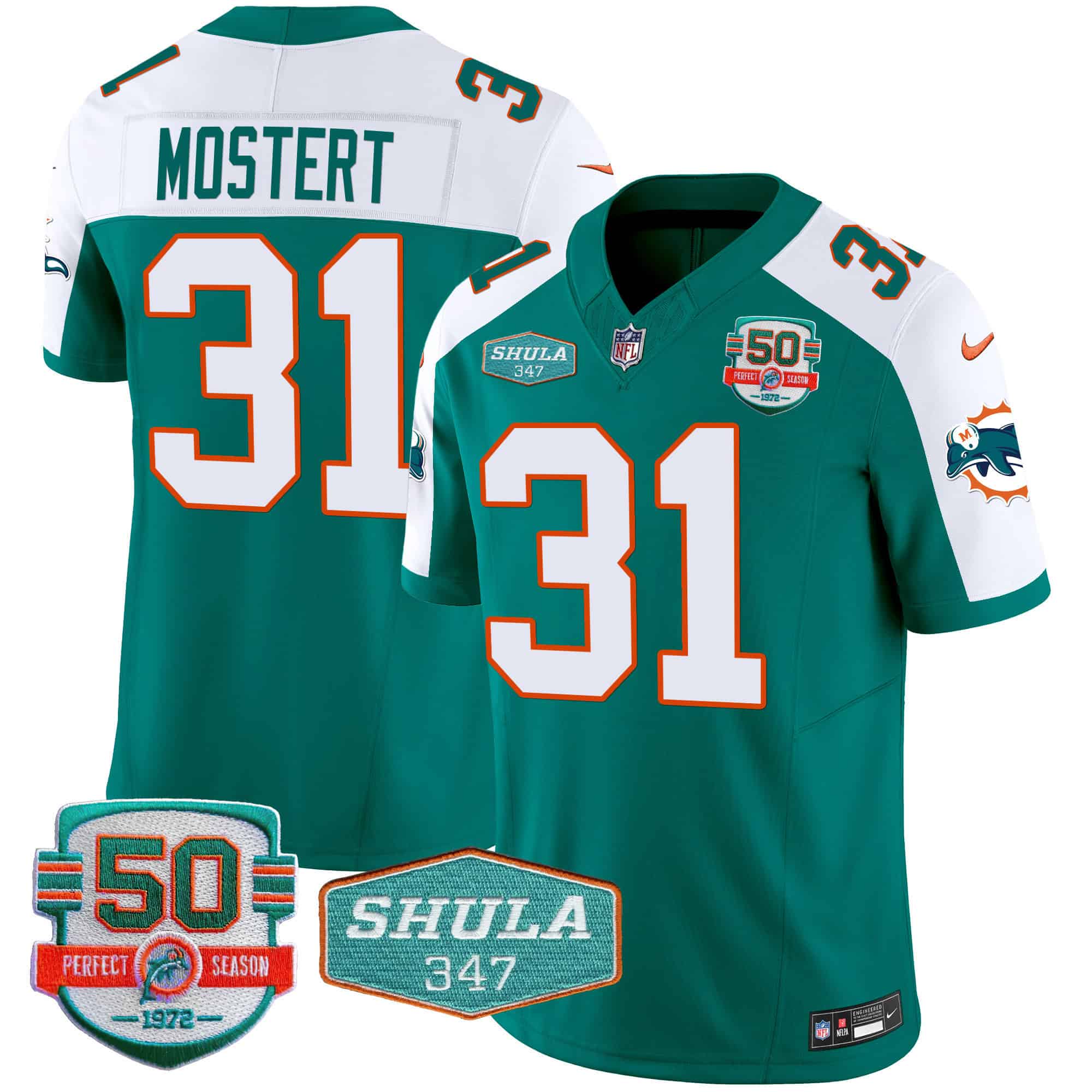 Men’s Dolphins Throwback Shula 347 Patch Vapor Jersey – All Stitched