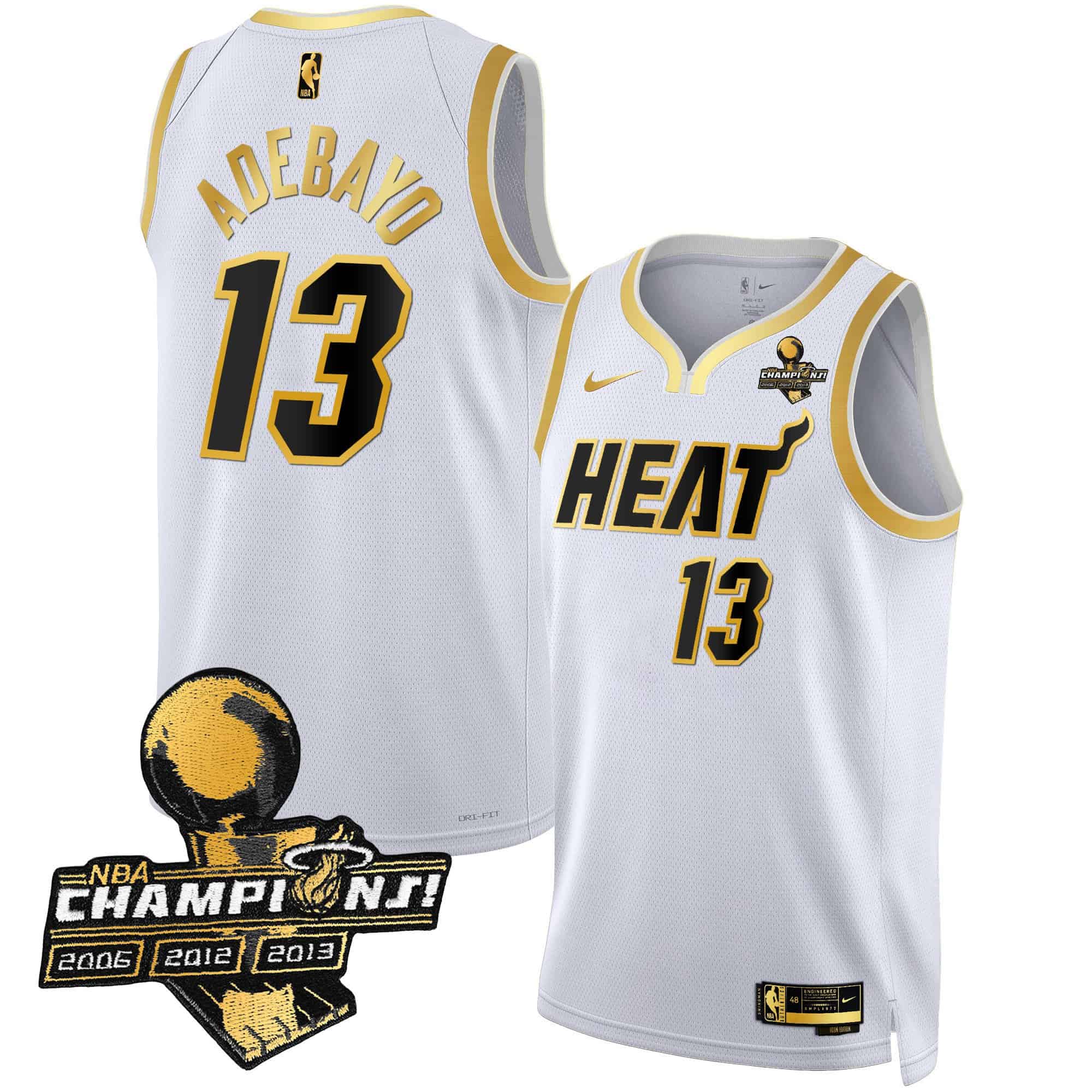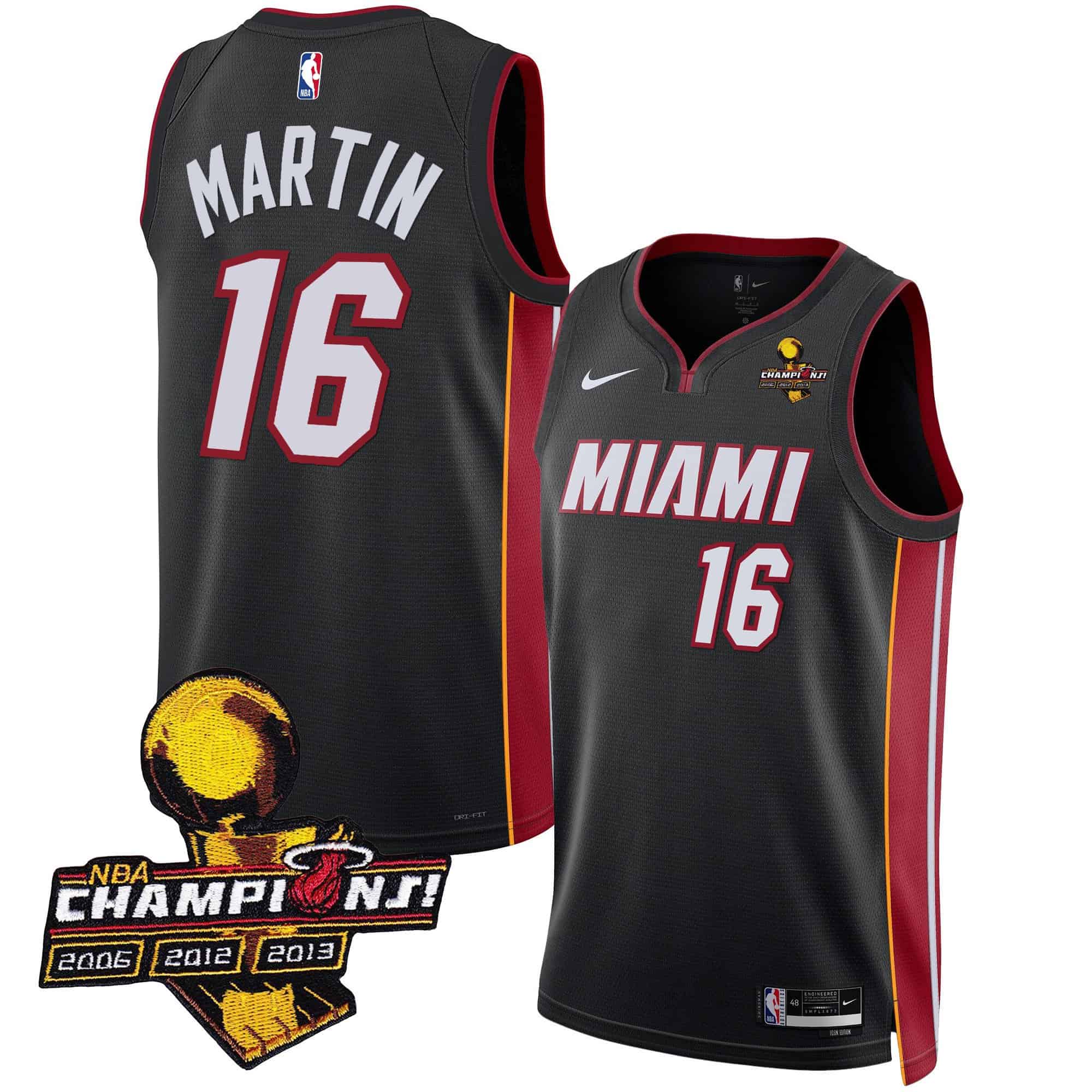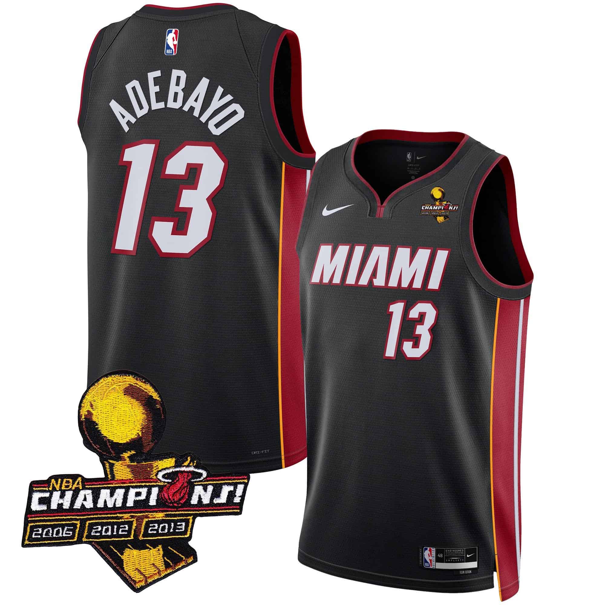 Men’s Miami Heat 3-Time Champions Patch Collection Jersey – All Stitched