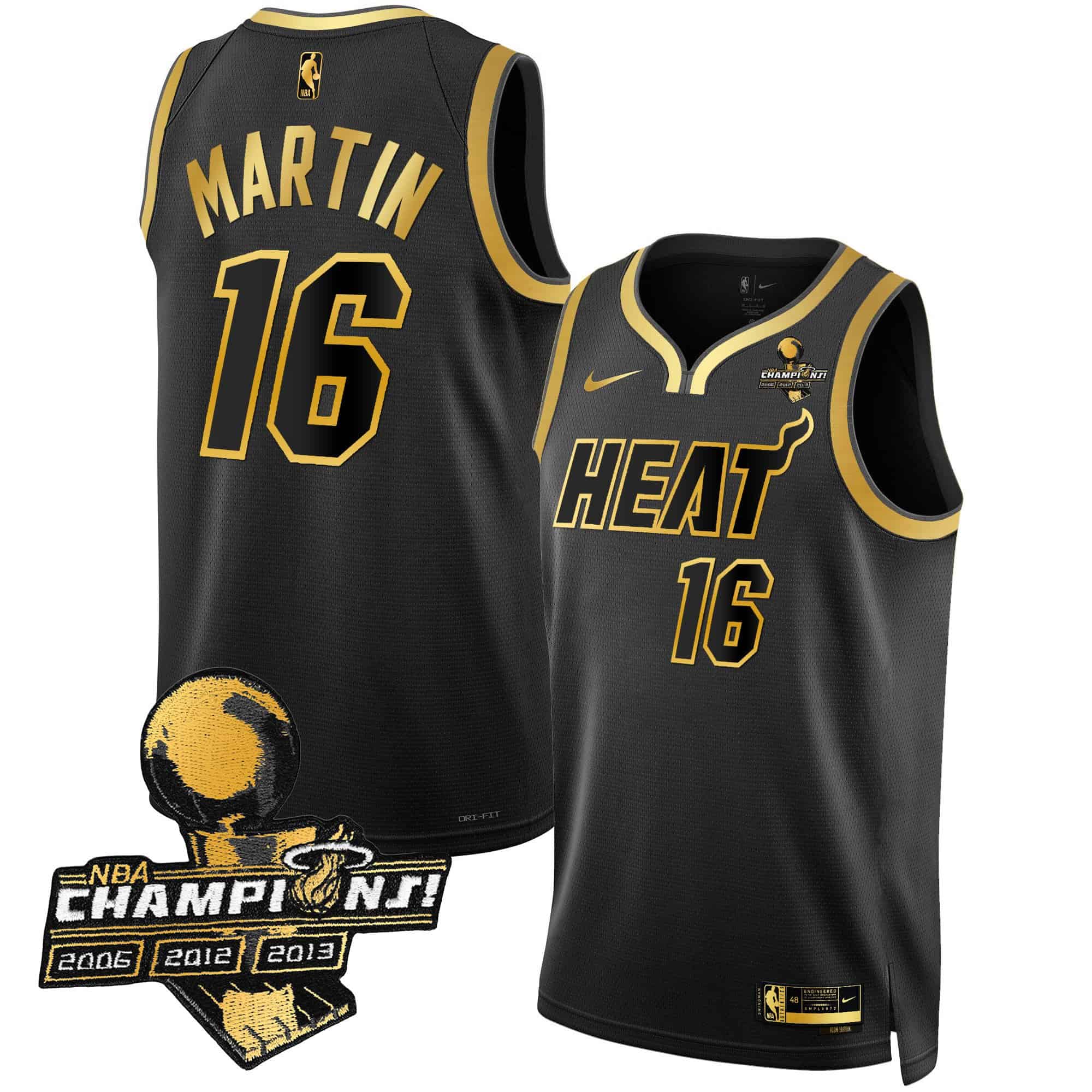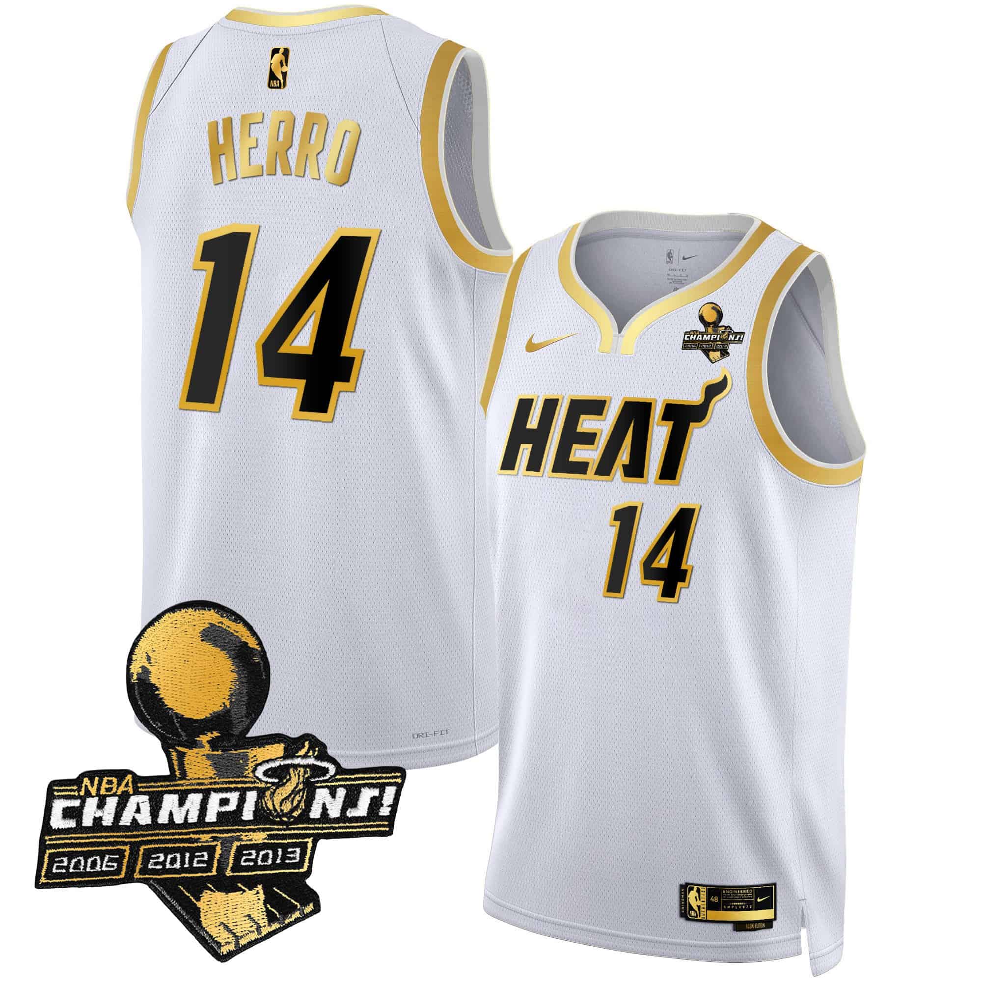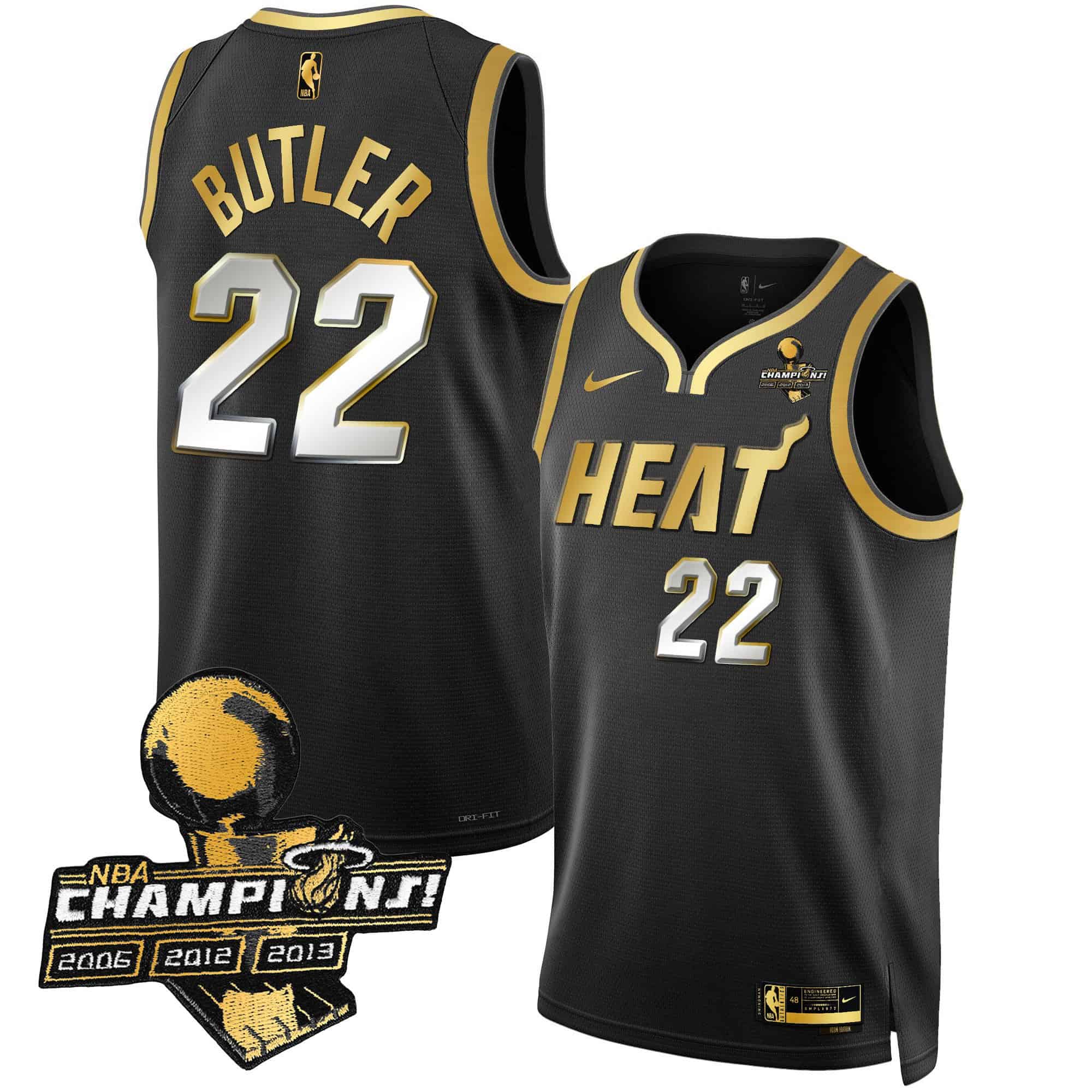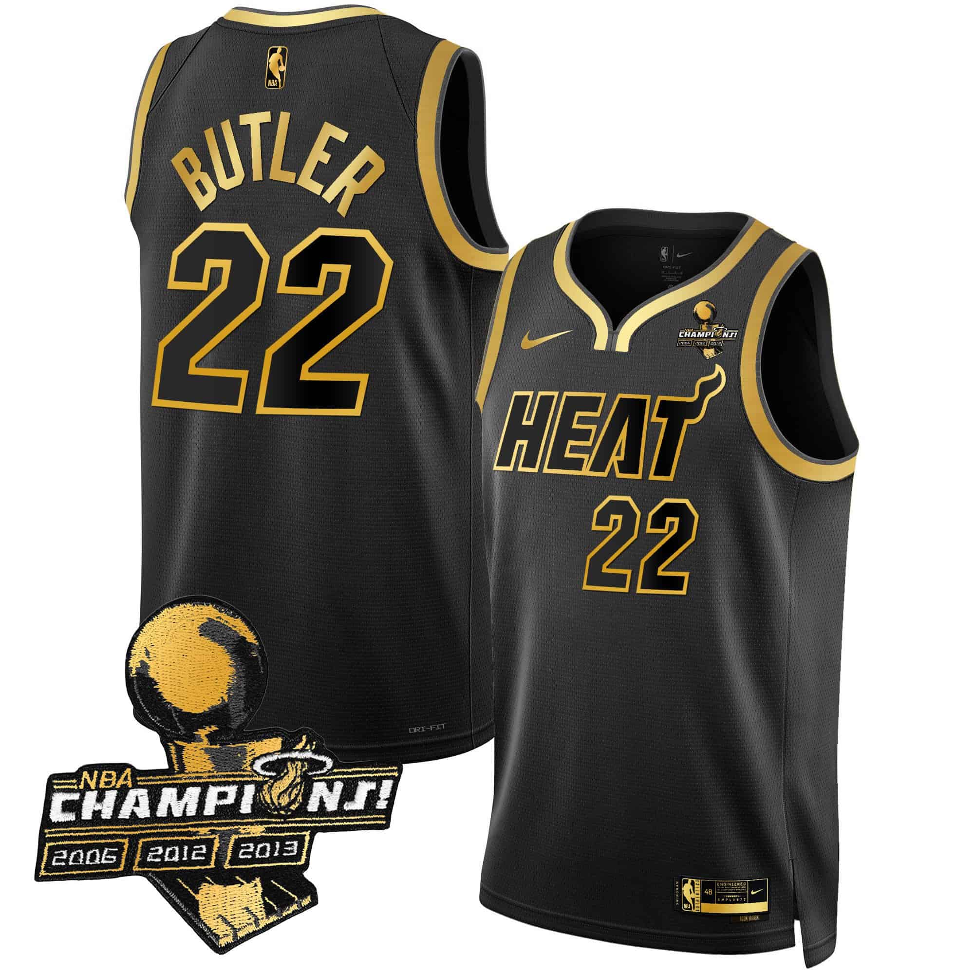 Men’s Miami Heat 3-Time Champions Patch Collection Jersey – All Stitched