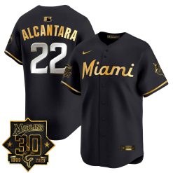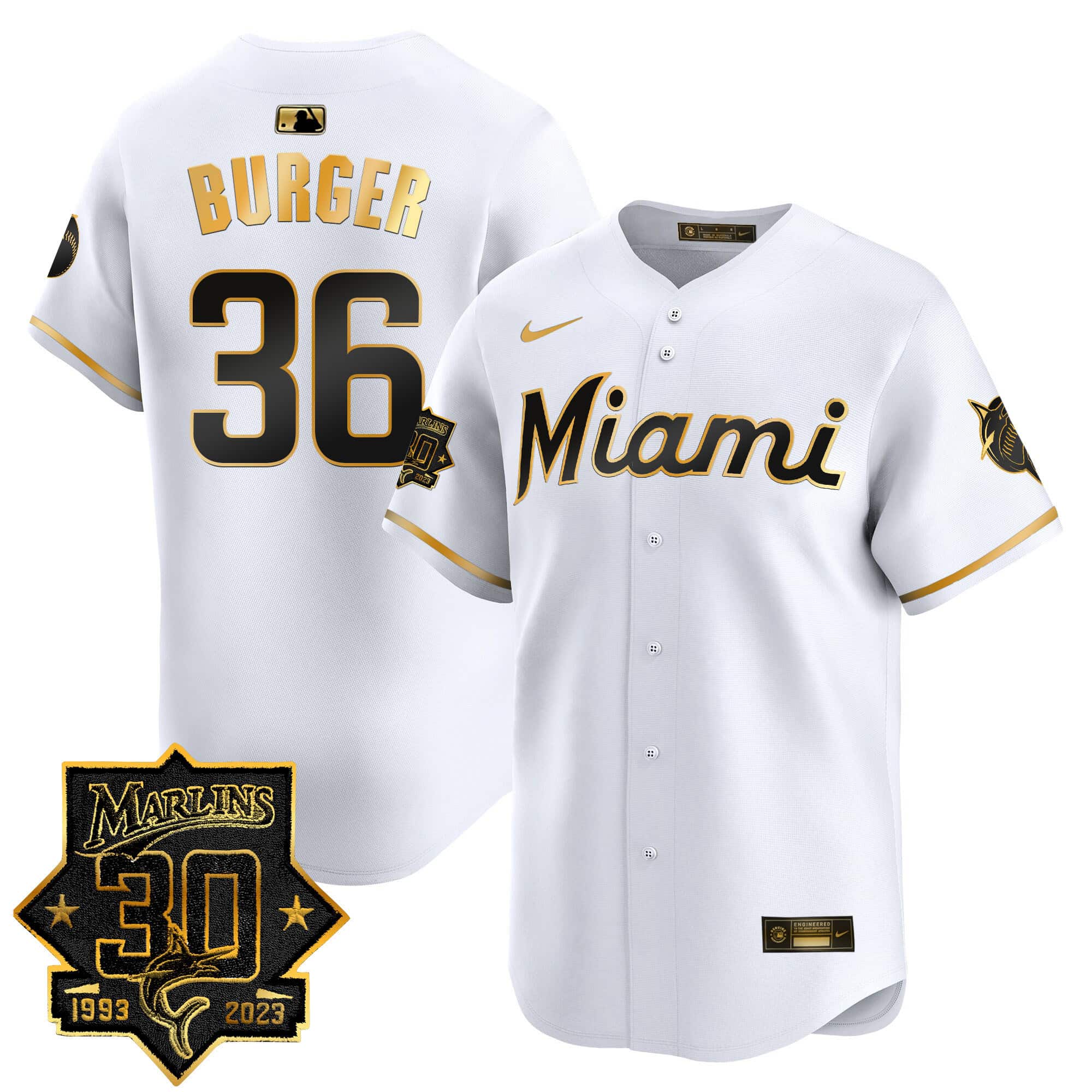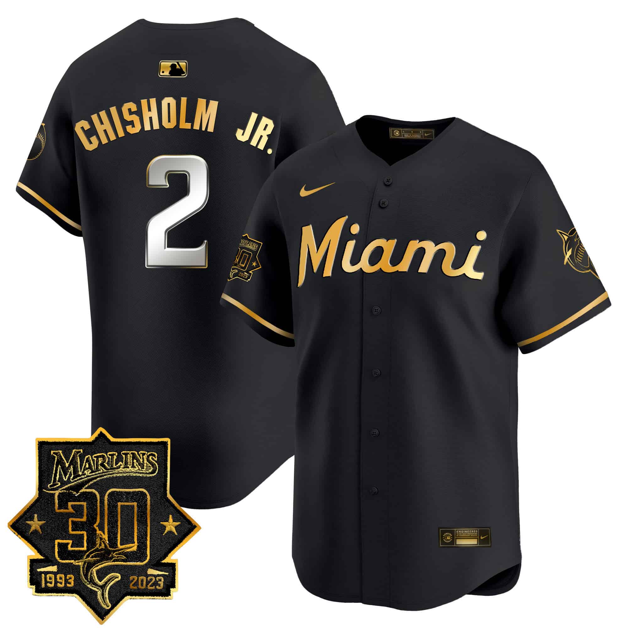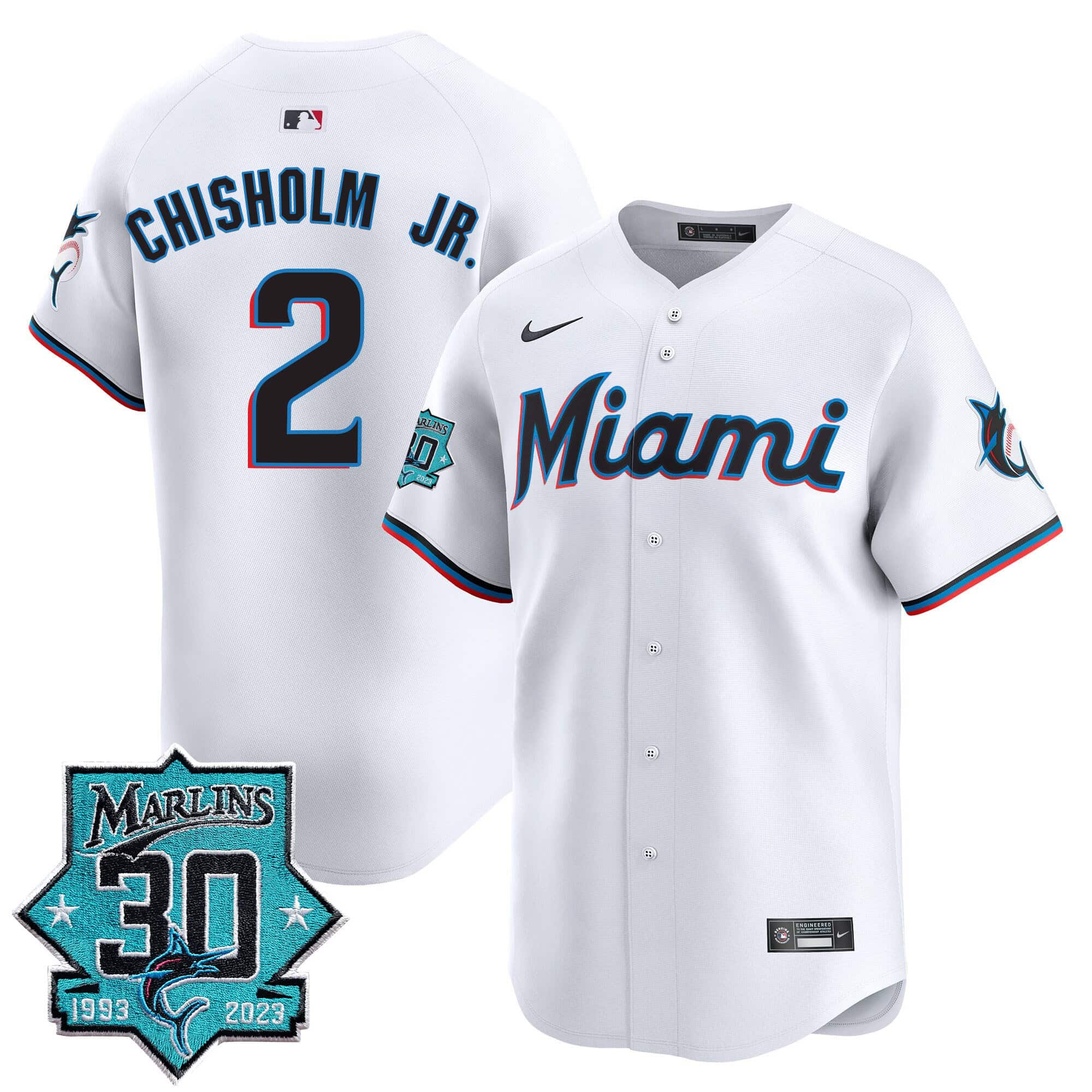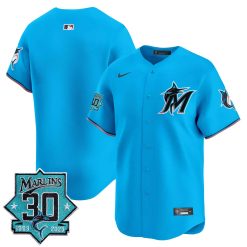 Men’s Miami Marlins 30 Seasons Anniversary Patch Vapor Premier Limited Jersey – All Stitched