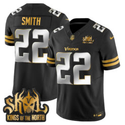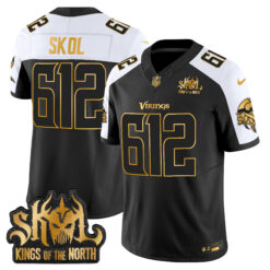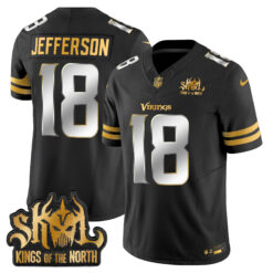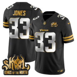 Men’s Minnesota Vikings 2025 Gold Vapor Limited Jersey – Kings Of The North Patch – All Stitched