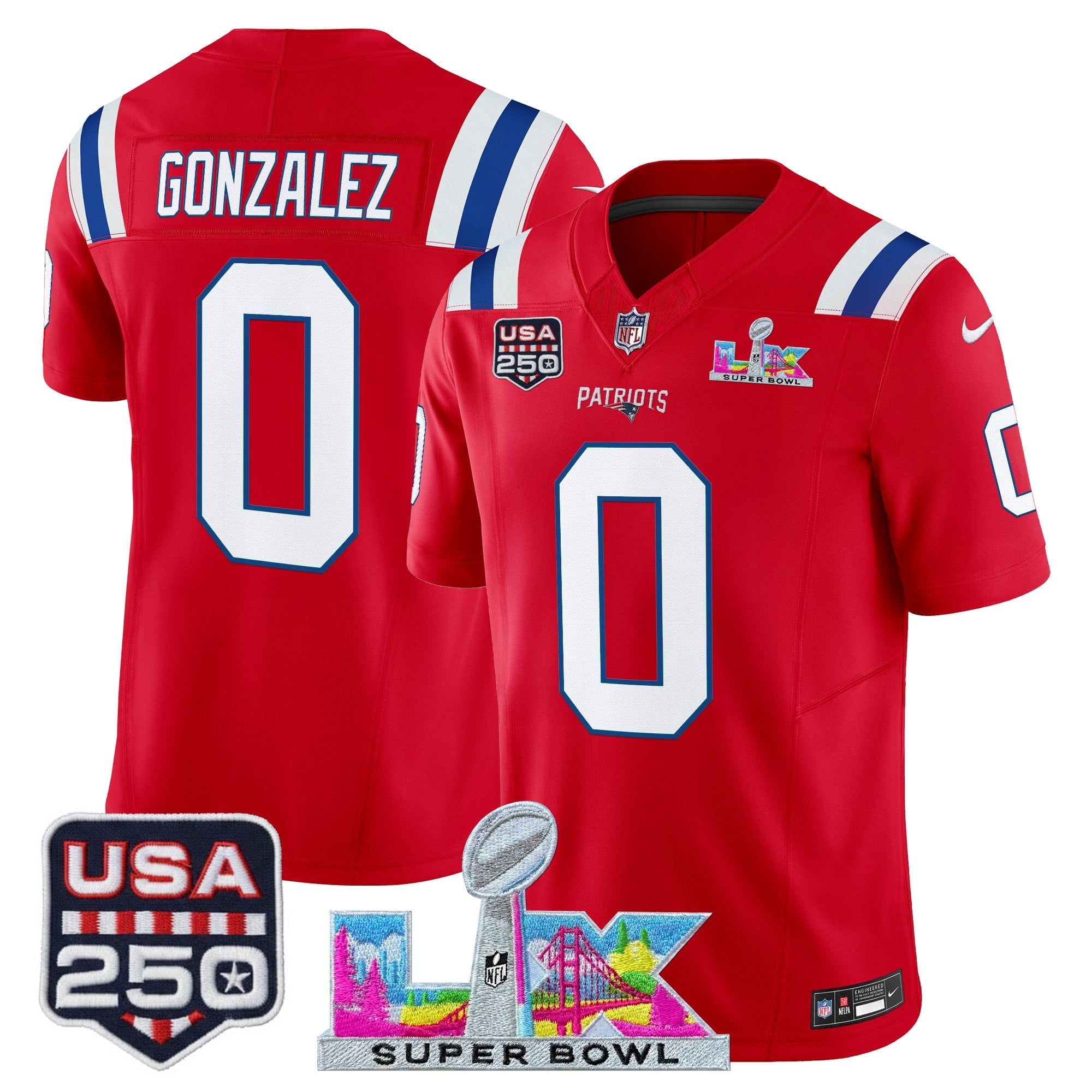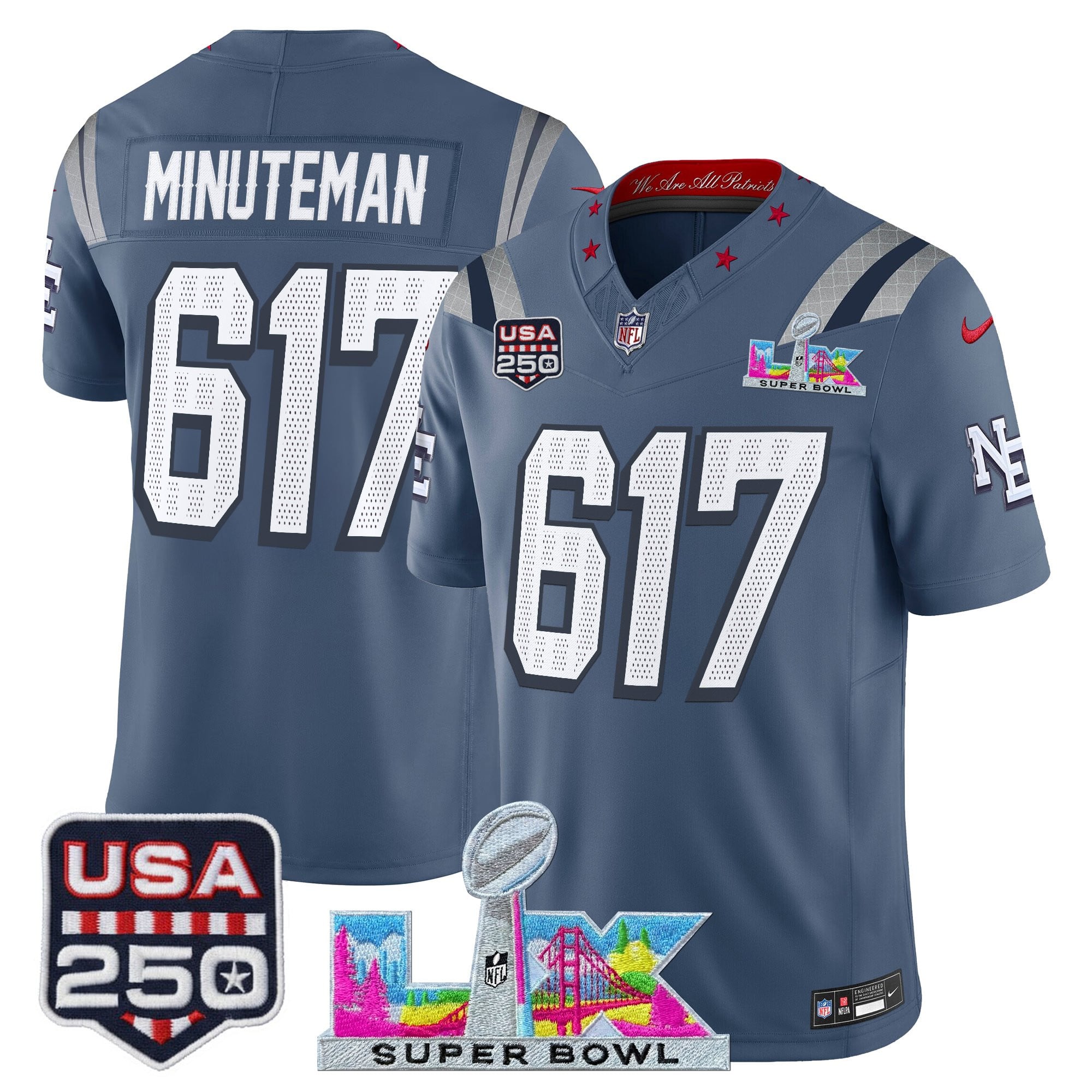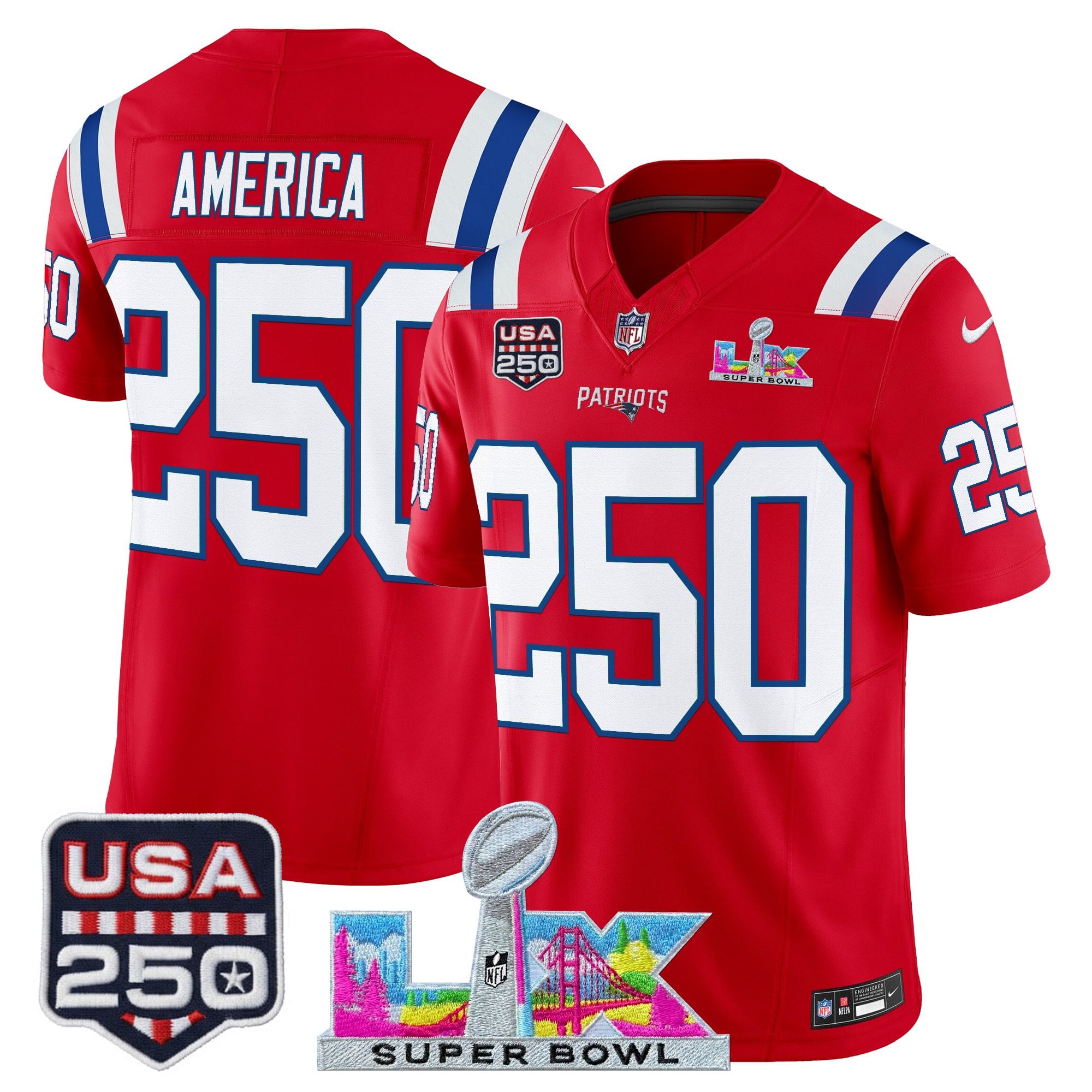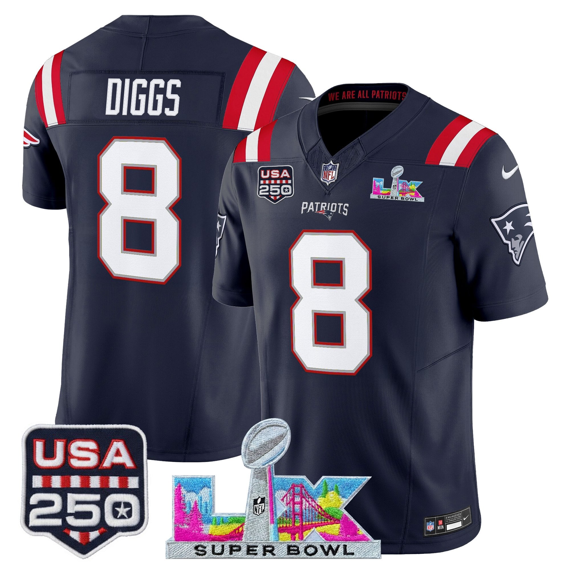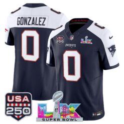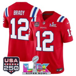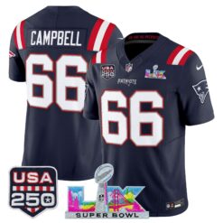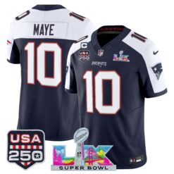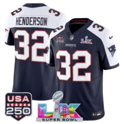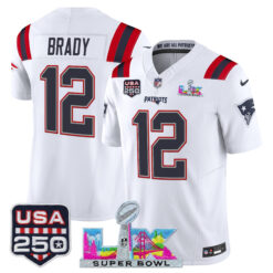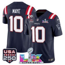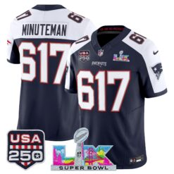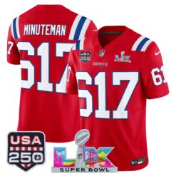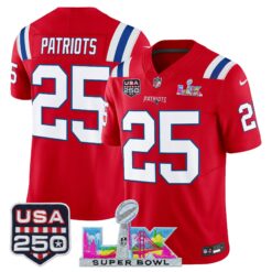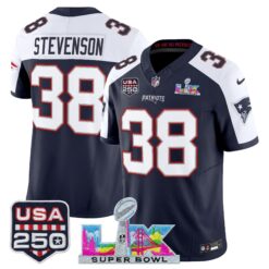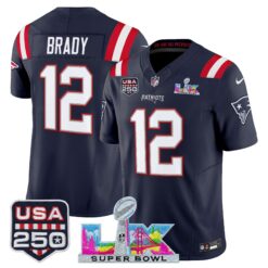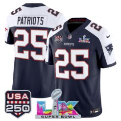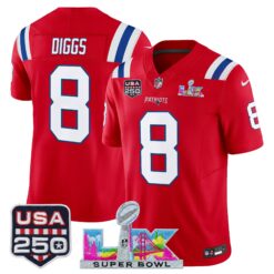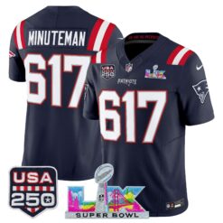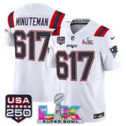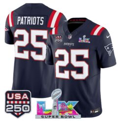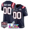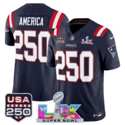 Men’s New England Patriots “Super Bowl LX & United States 250th Anniversary Patch” Vapor Limited Jersey – All Stitched
