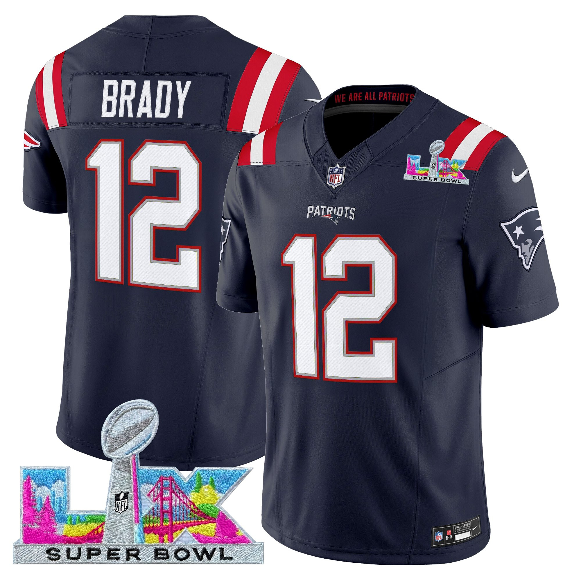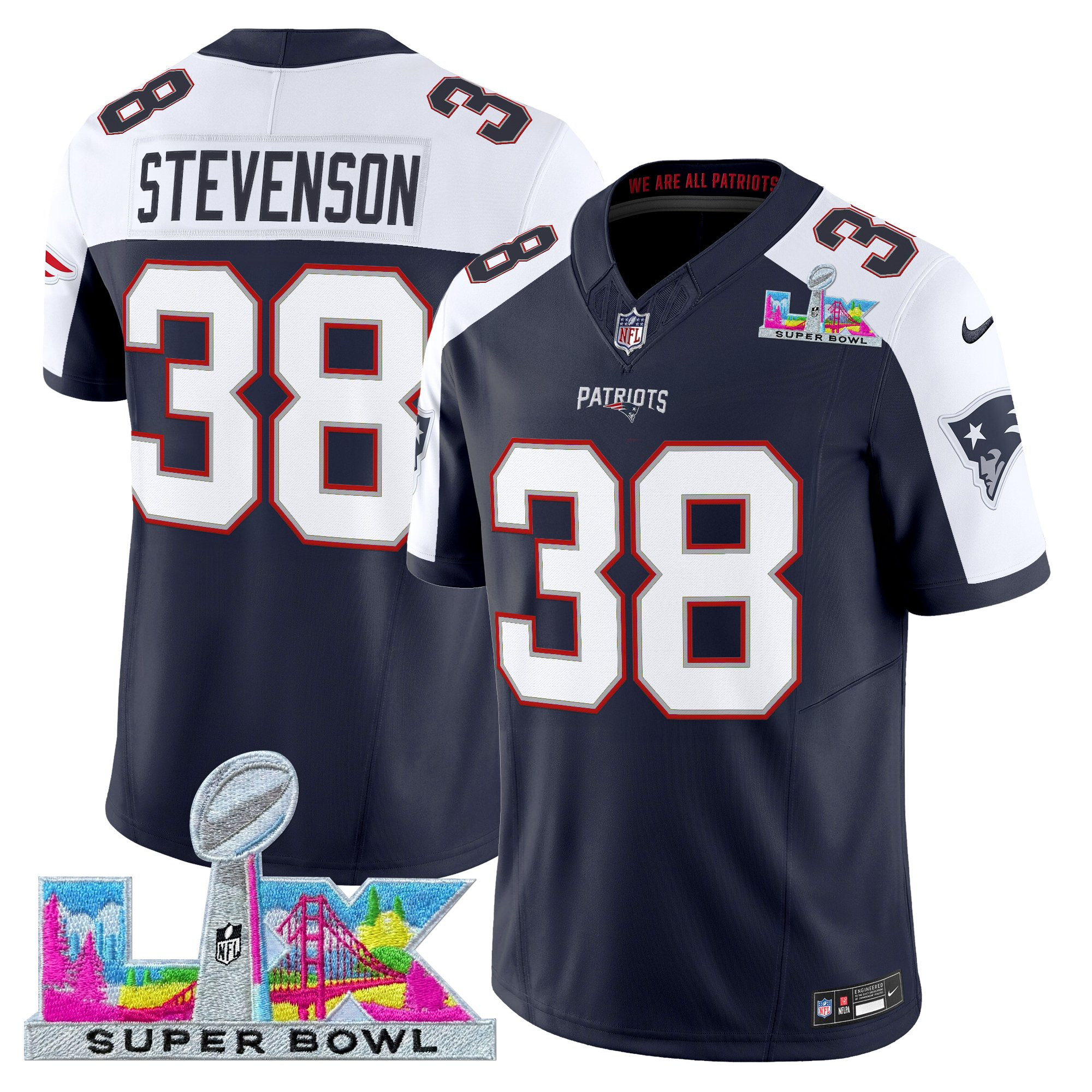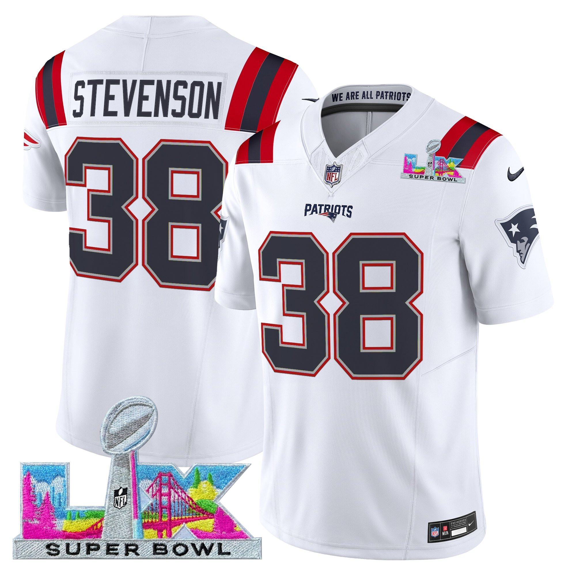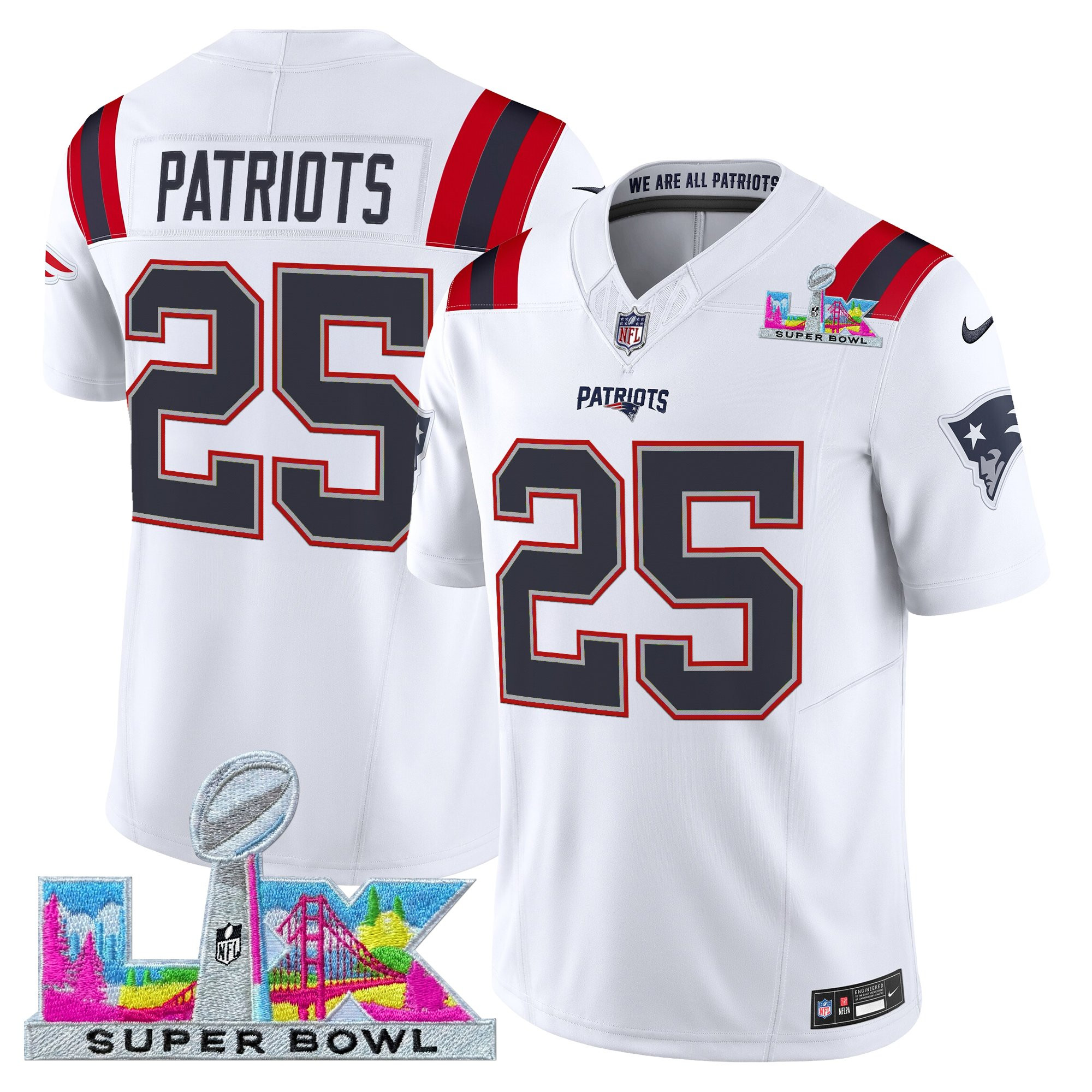 Men’s New England Patriots Super Bowl LX Vapor Limited Jersey – All Stitched