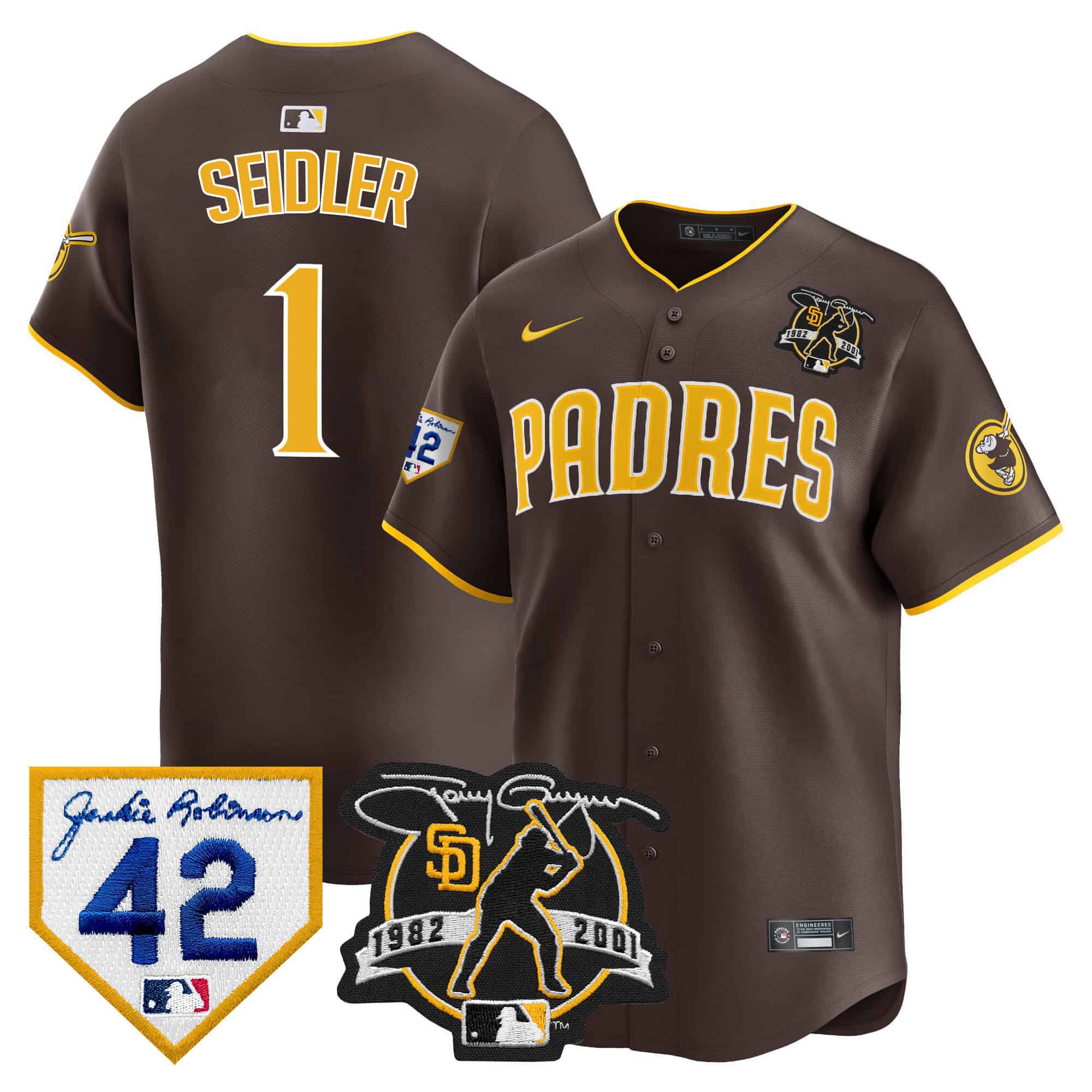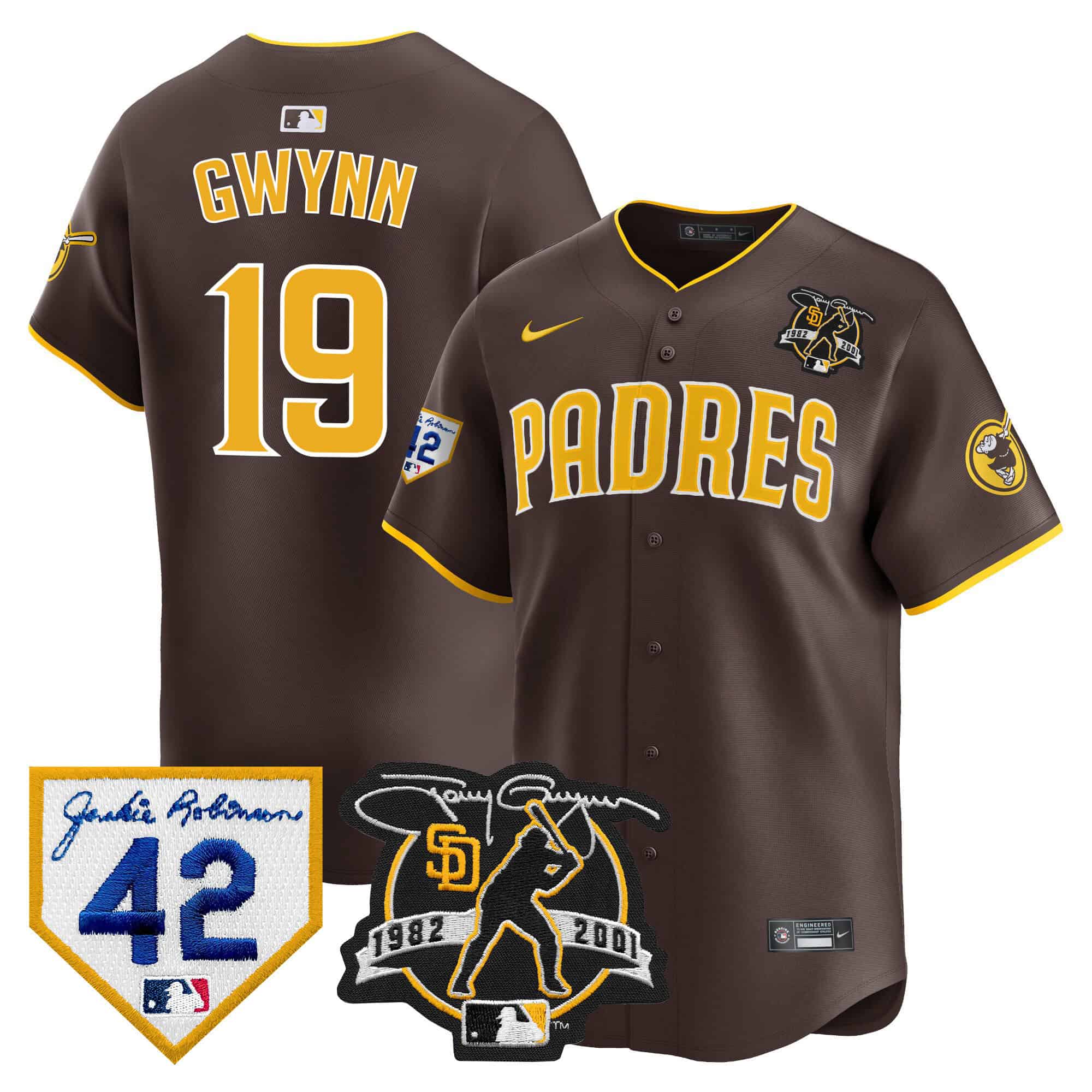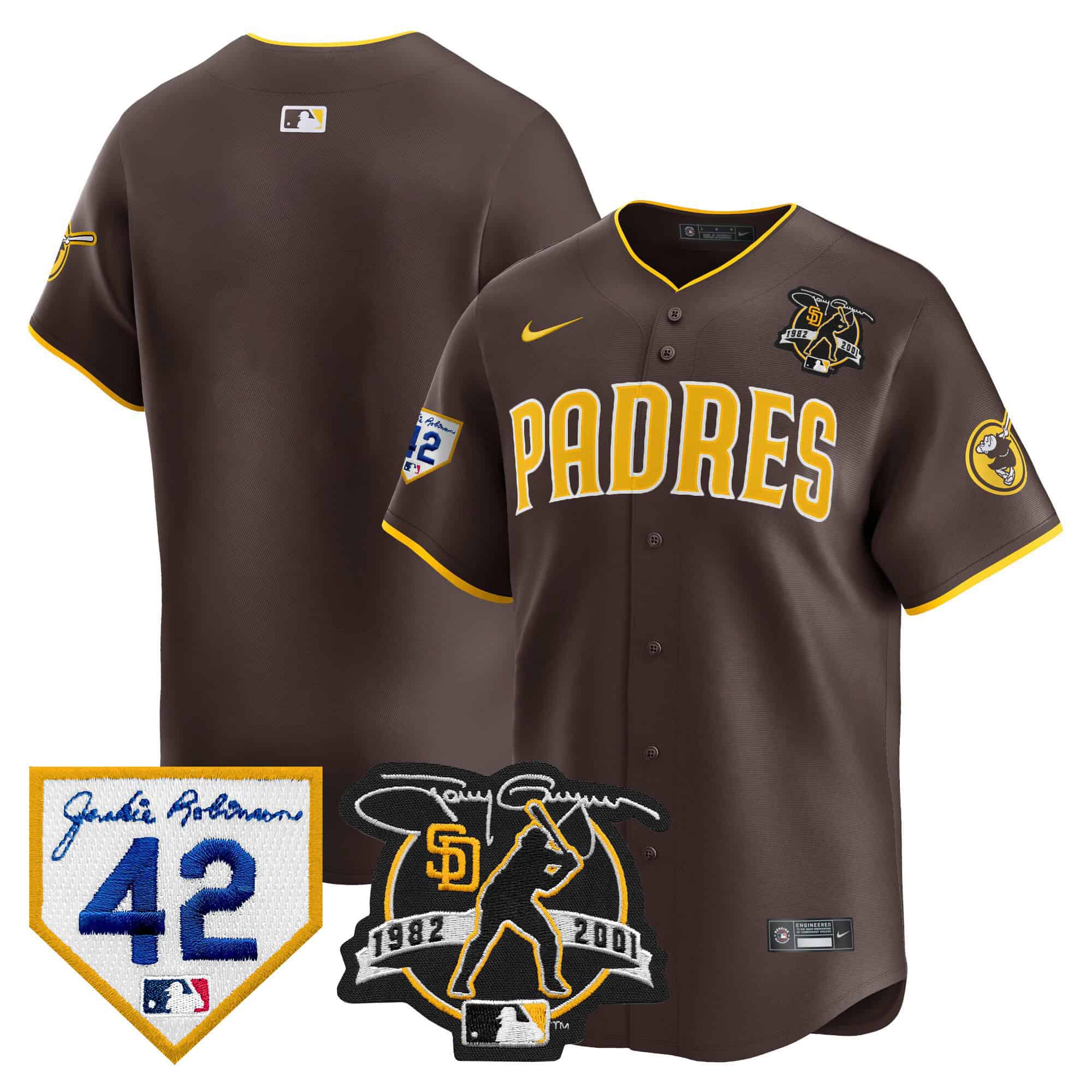 Men’s Padres 2024 Tony Gwynn & Robinson Patch Vapor Premier Limited Jersey – All Stitched