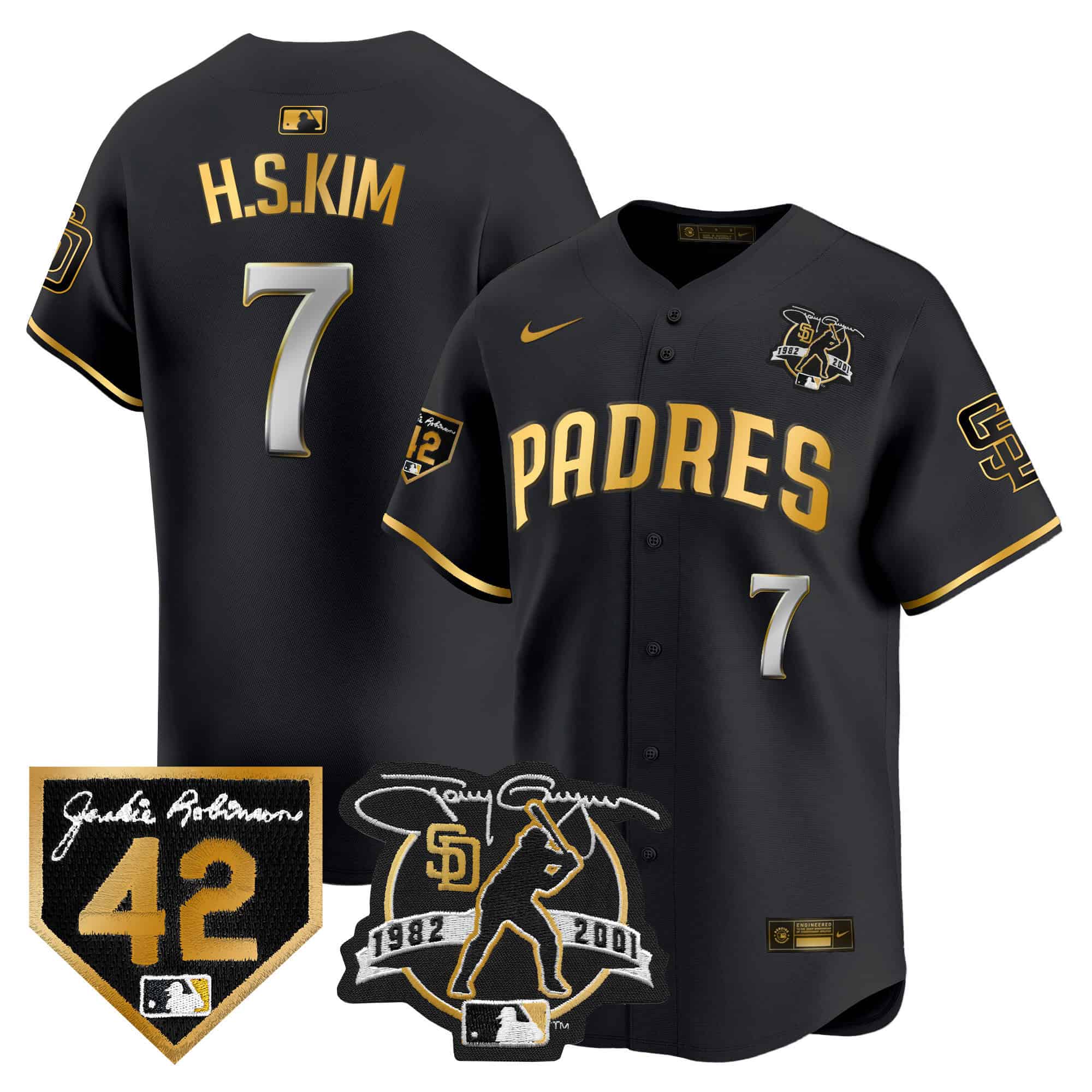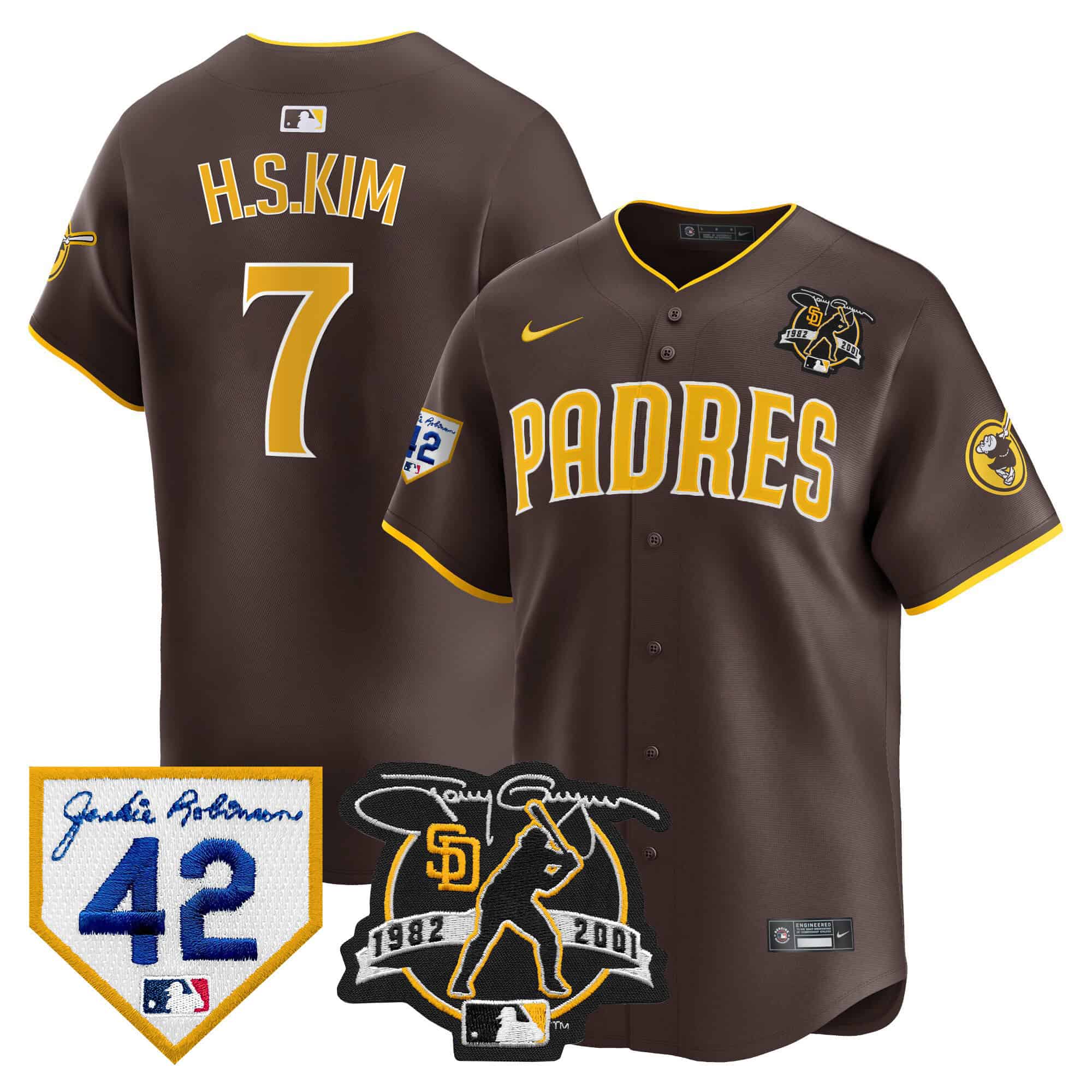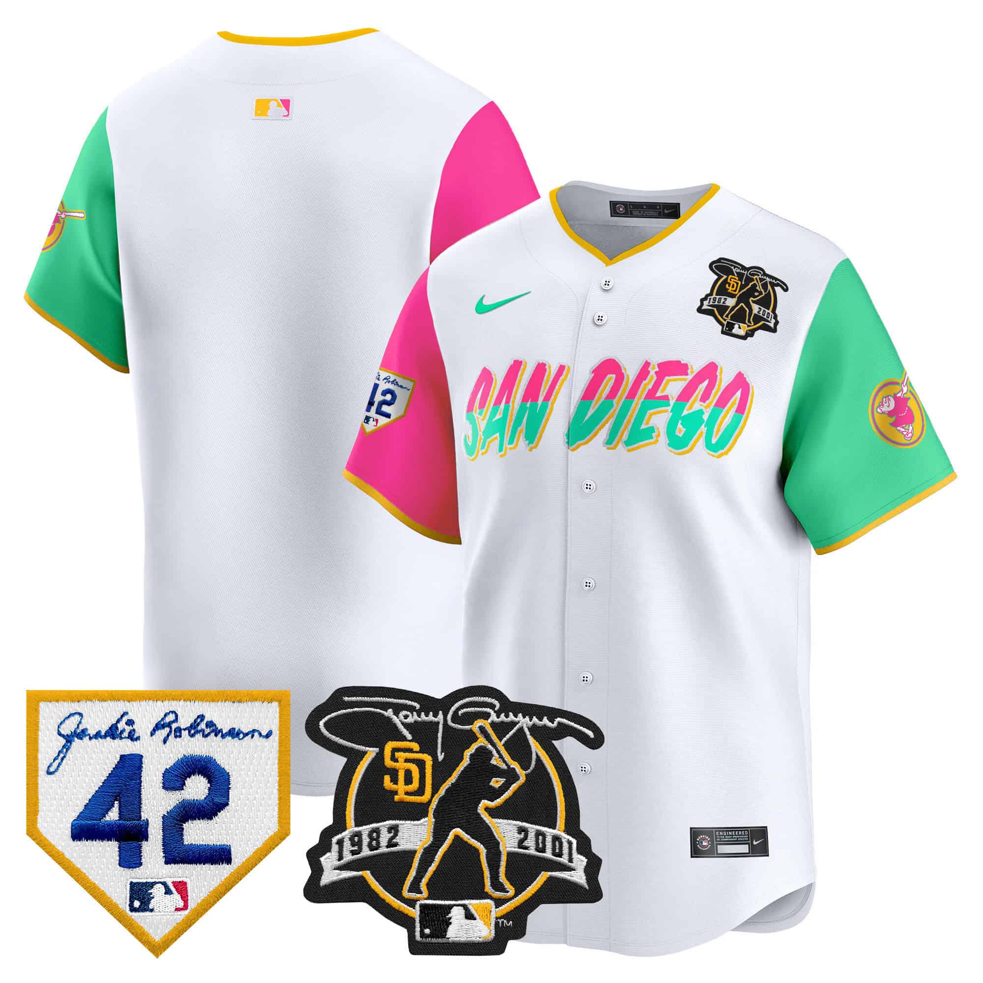 Men’s Padres 2024 Tony Gwynn & Robinson Patch Vapor Premier Limited Jersey – All Stitched