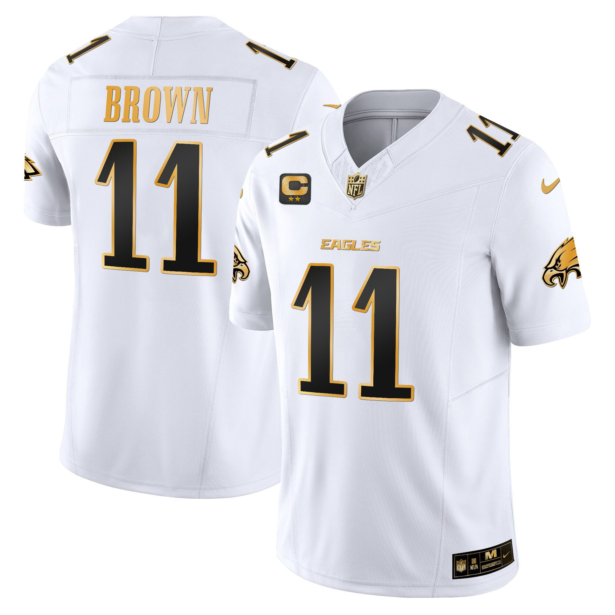 Men’s Philadelphia Eagles 2025 Gold Vapor Limited Jersey – All Stitched