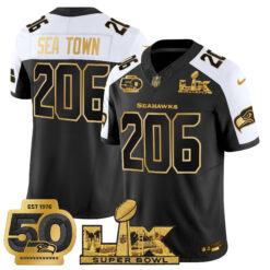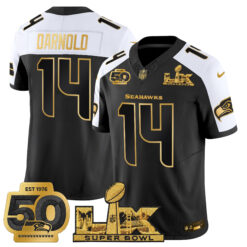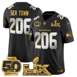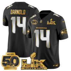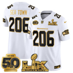 Men’s Seattle Seahawks “Super Bowl LX & 50th Patch” Gold Vapor Limited Jersey – All Stitched
