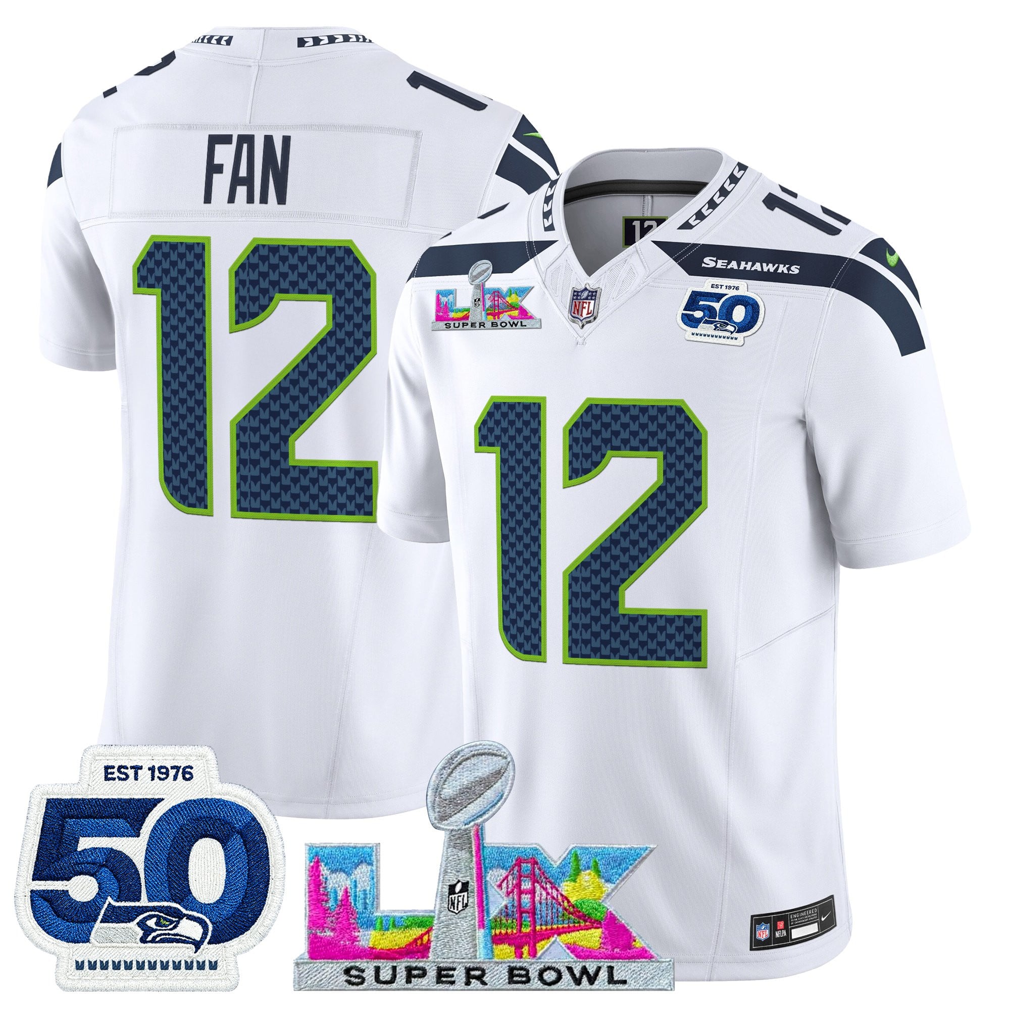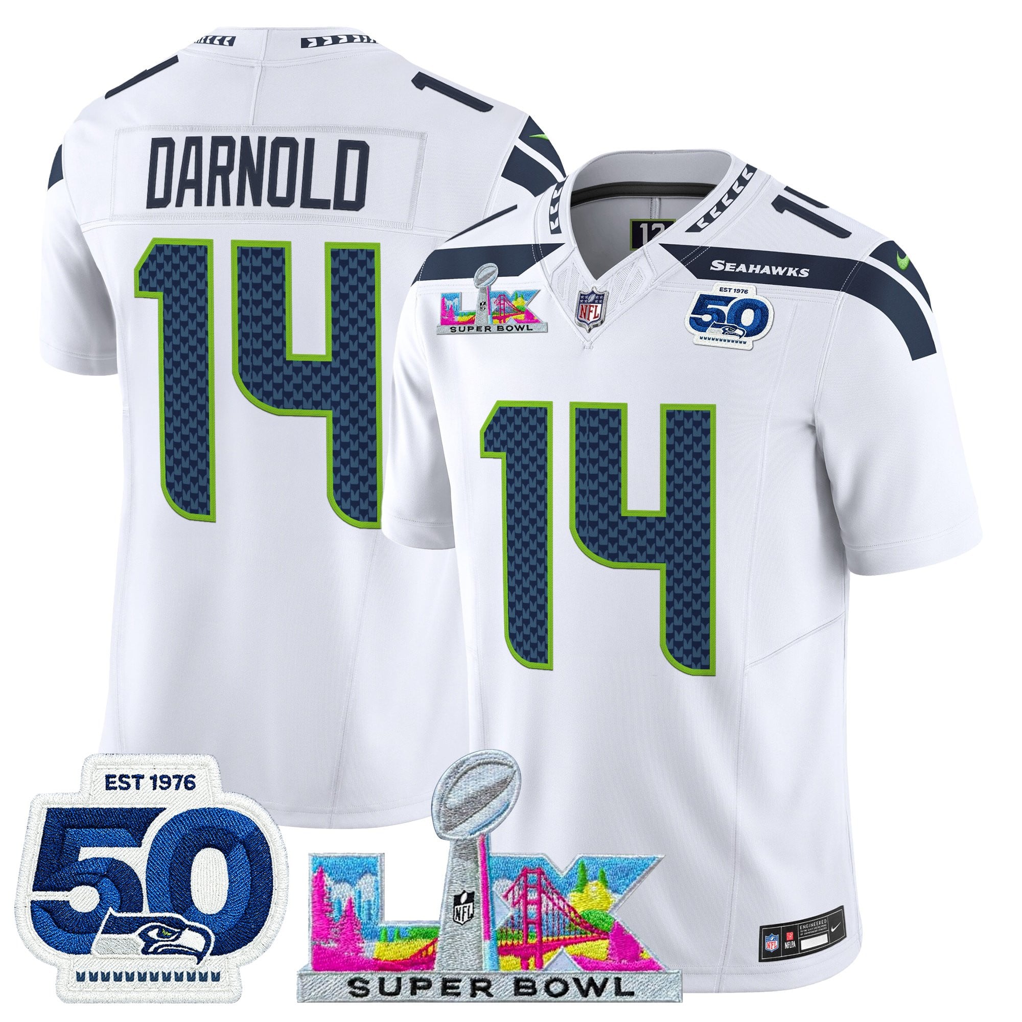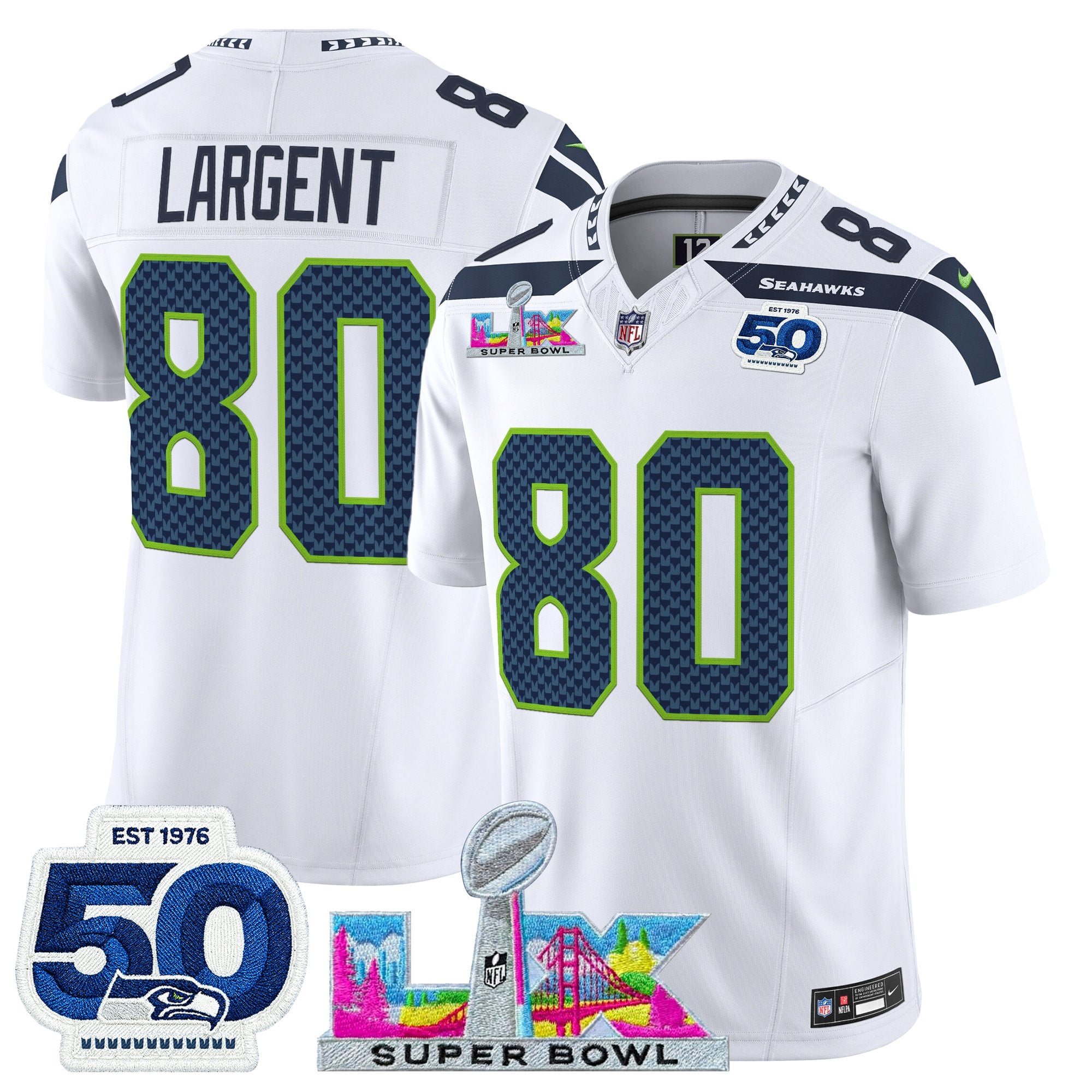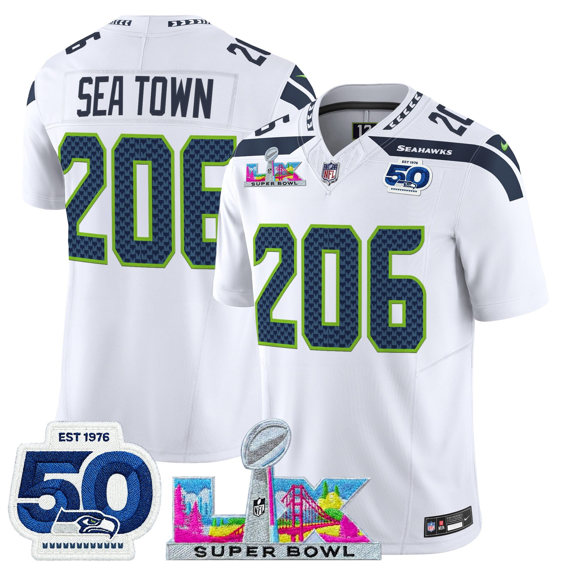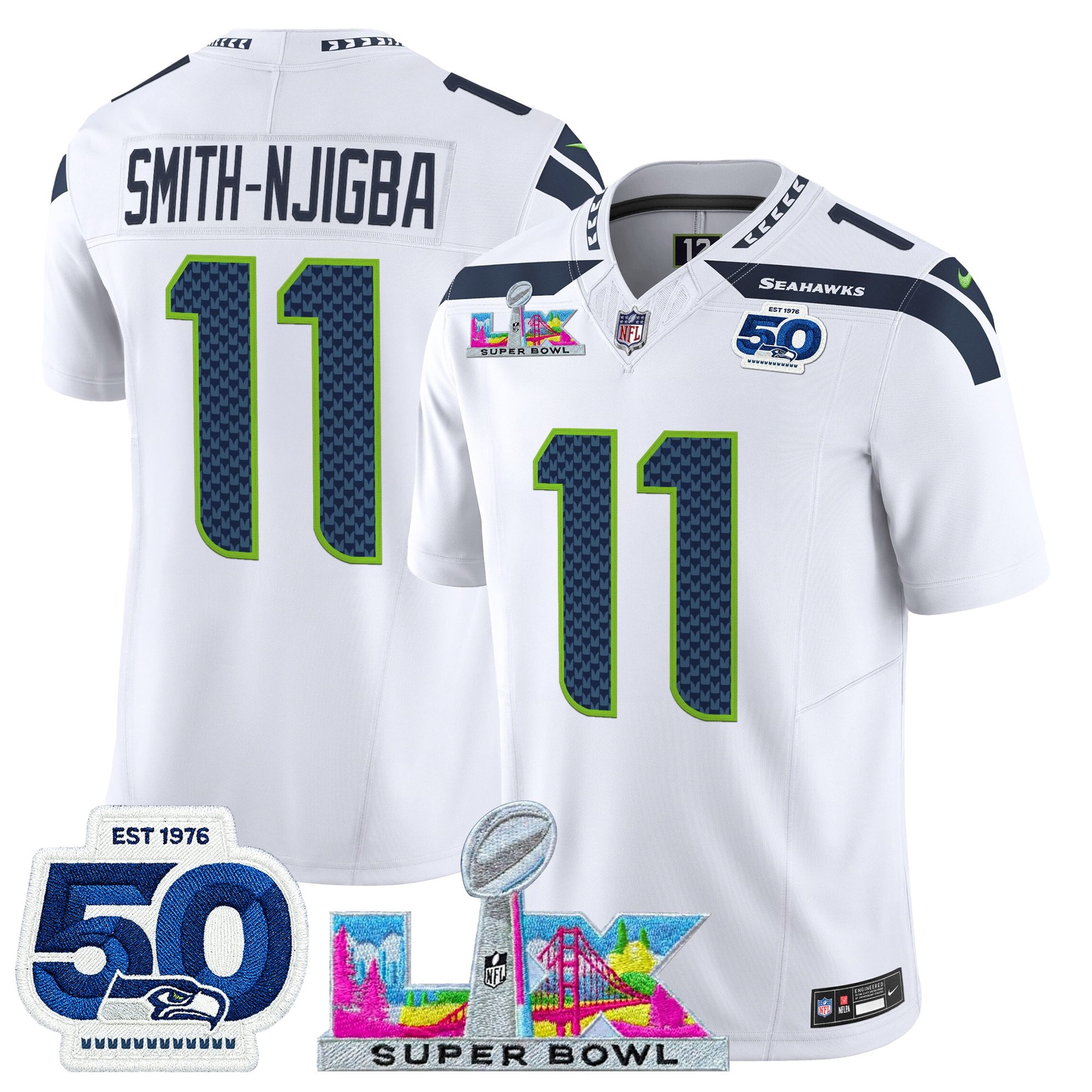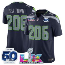 Men’s Seattle Seahawks “Super Bowl LX & 50th Patch” Vapor Limited Jersey – All Stitched