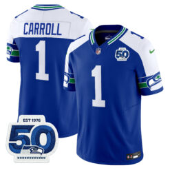 Men’s Seattle Seahawks Throwback Vapor Limited Jersey – 50th Anniversary Patch – All Stitched