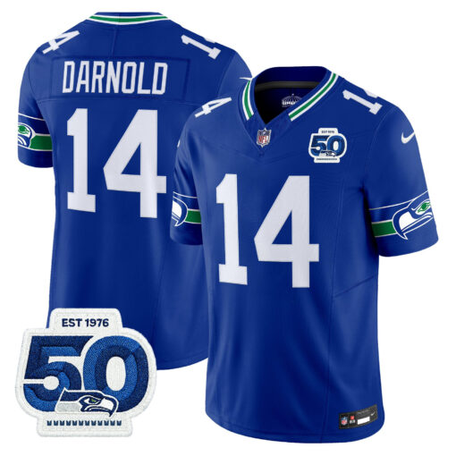 Men’s Seattle Seahawks Throwback Vapor Limited Jersey – 50th Anniversary Patch – All Stitched
