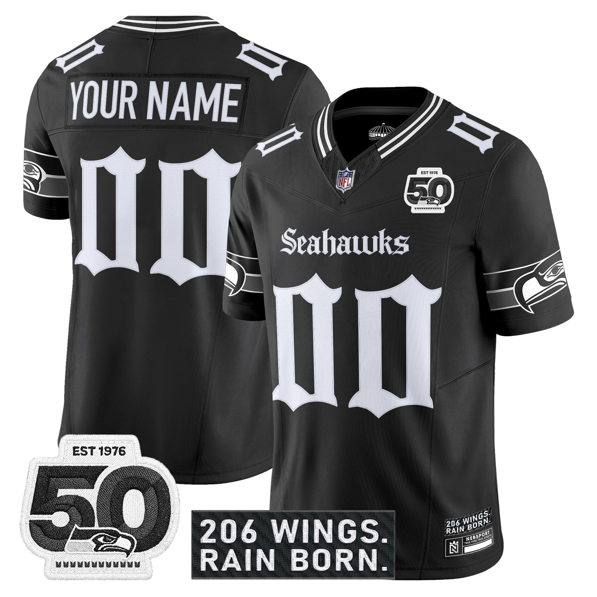 Seattle Seahawks 'Gothic Rain City Shadows Edition' Vapor Custom Jersey - 50th Anniversary Patch - All Stitched