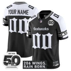 Seattle Seahawks ‘Gothic Rain City Shadows Edition’ Vapor Custom Jersey – 50th Anniversary Patch – All Stitched