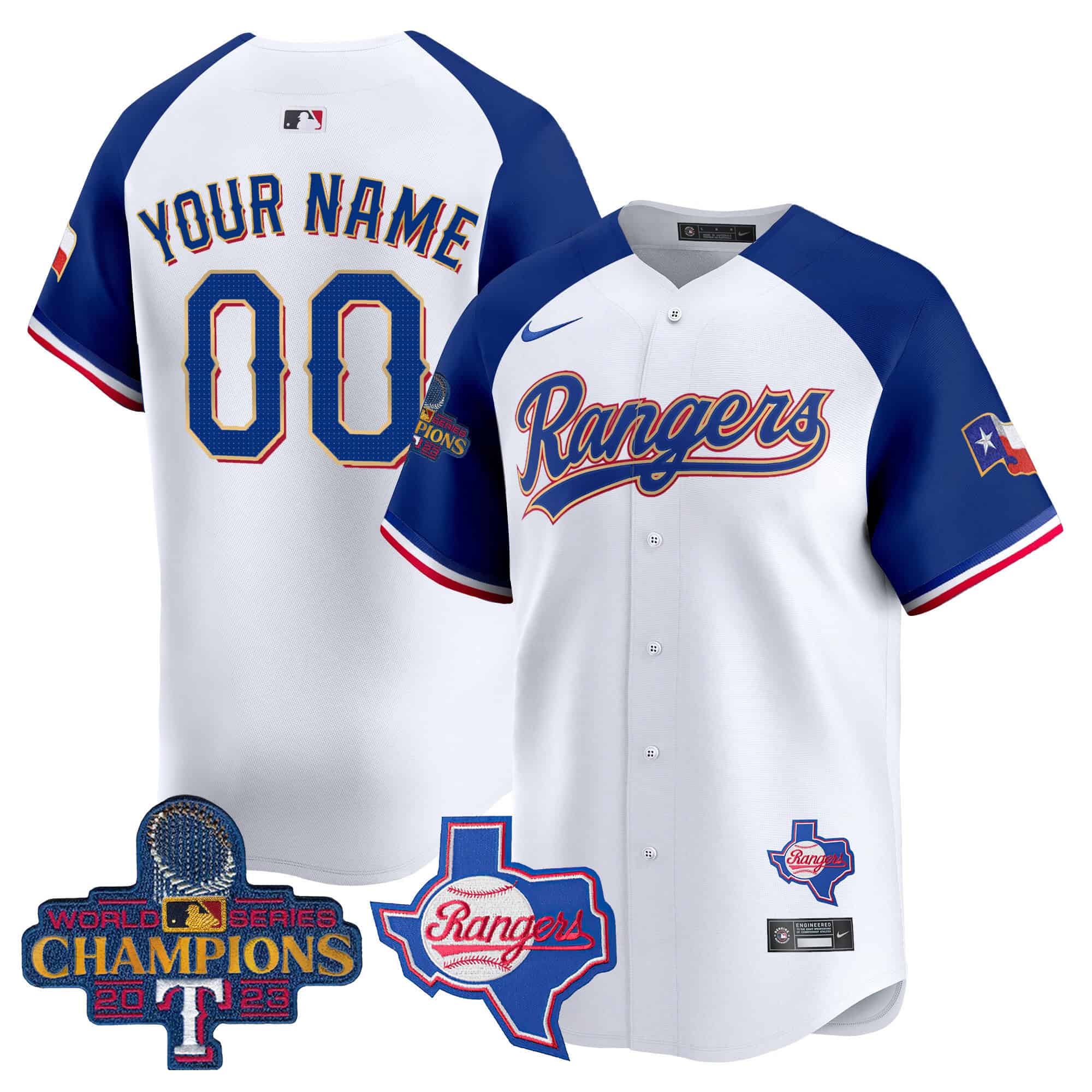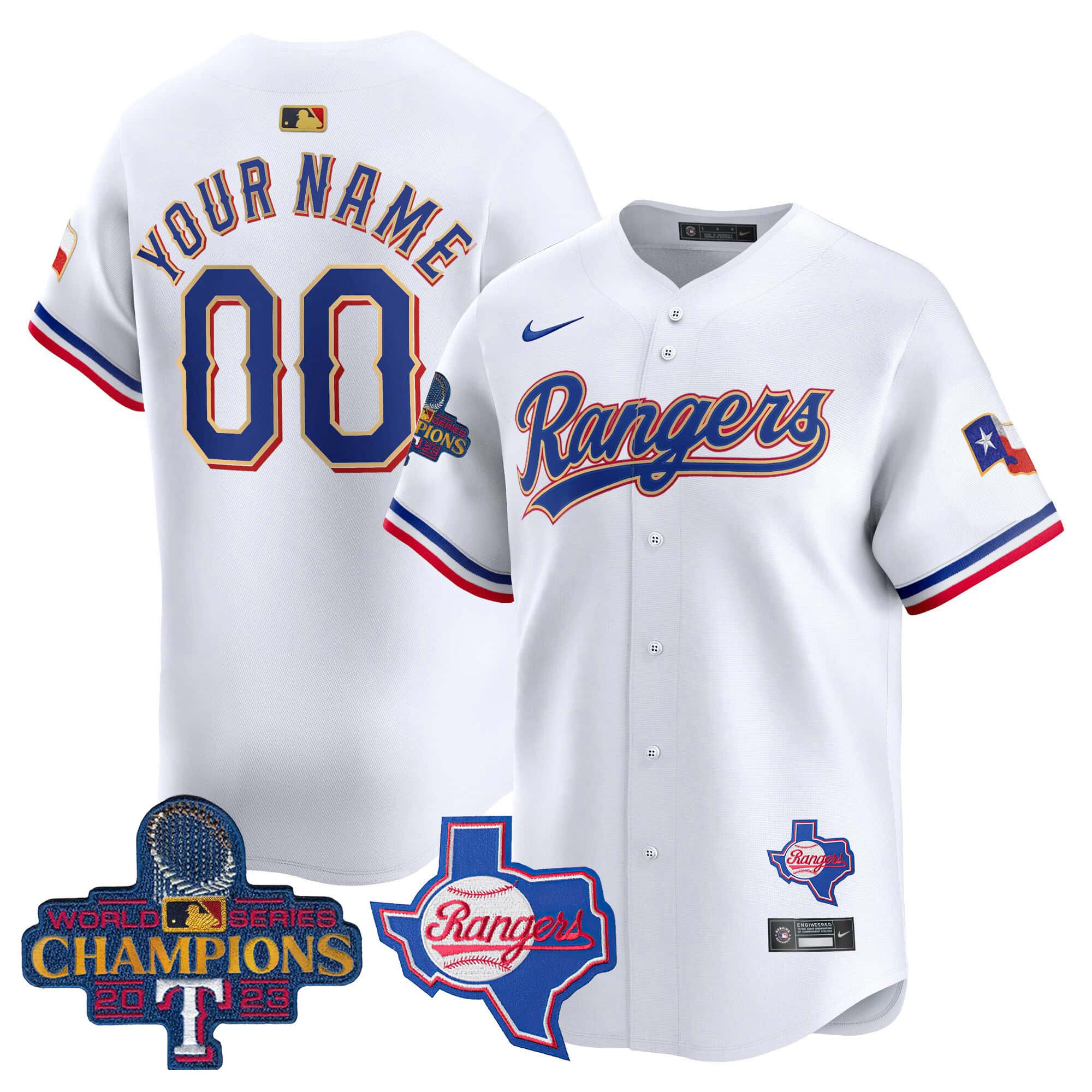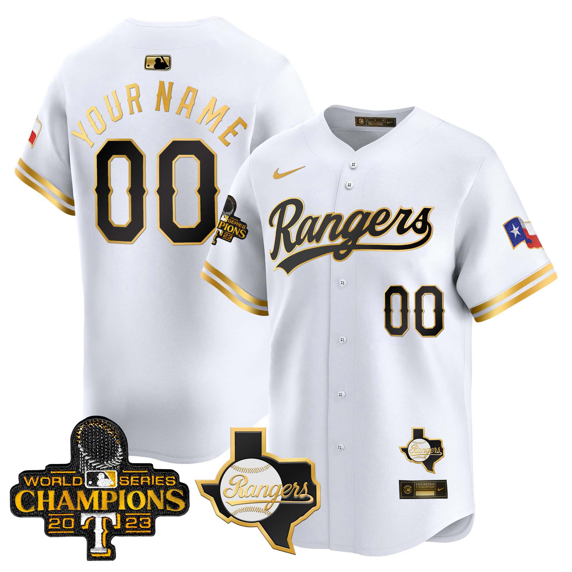 Texas Rangers 2023 World Series Champions Gold Trim Vapor Premier Limited Custom Jersey V2 – All Stitched