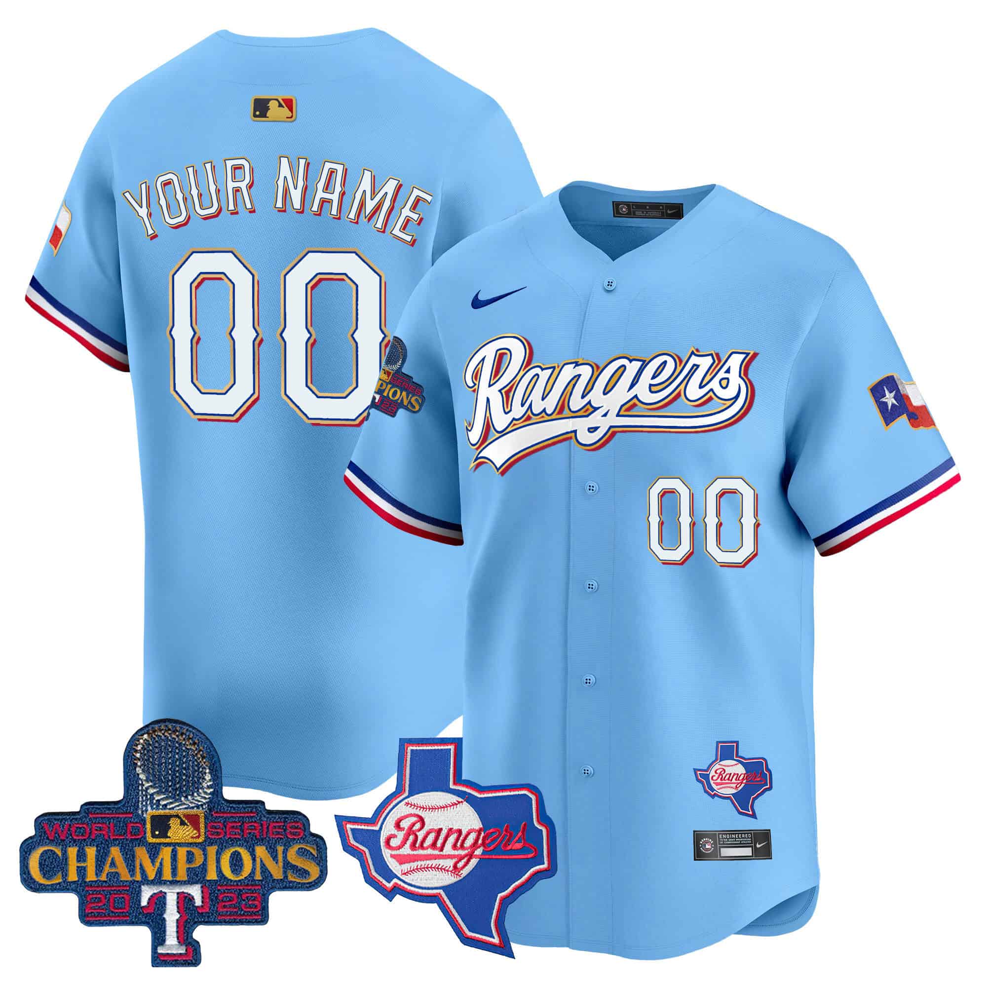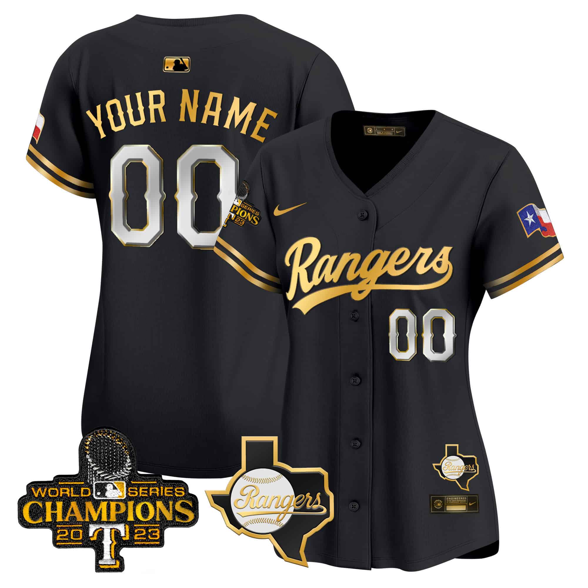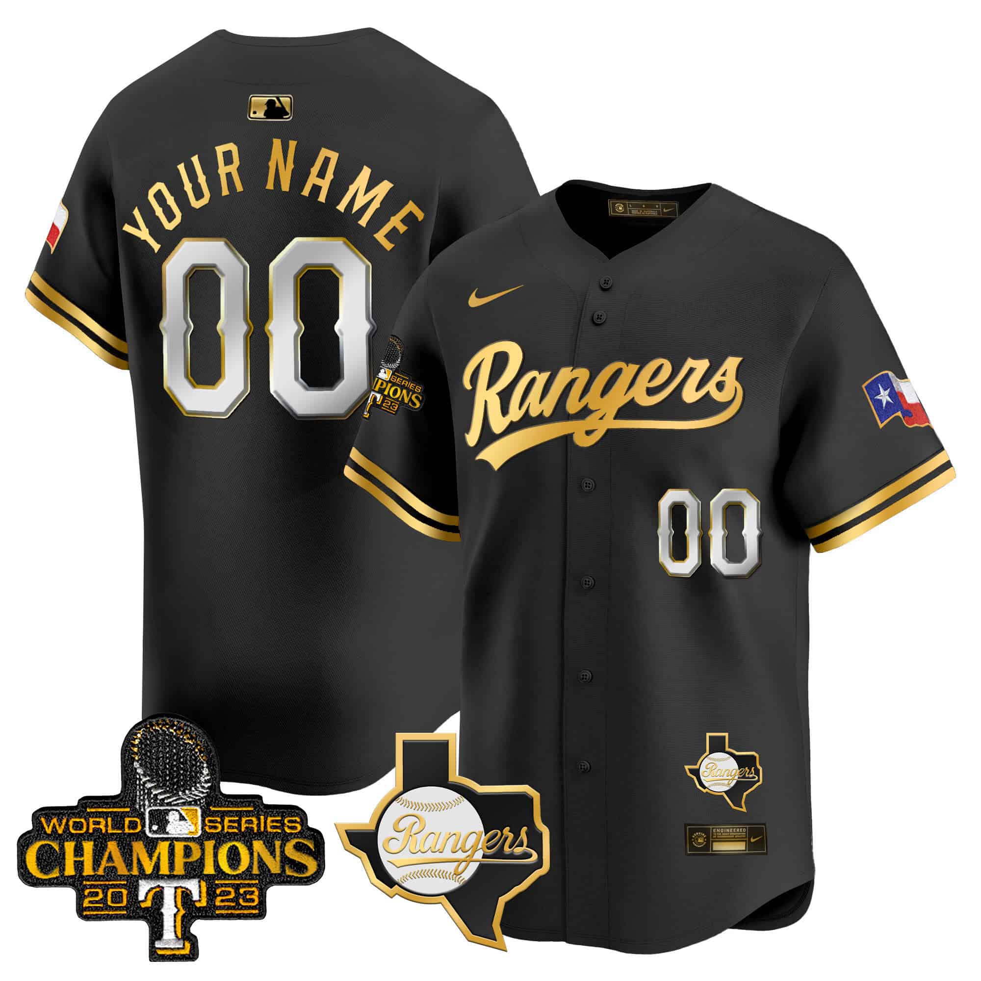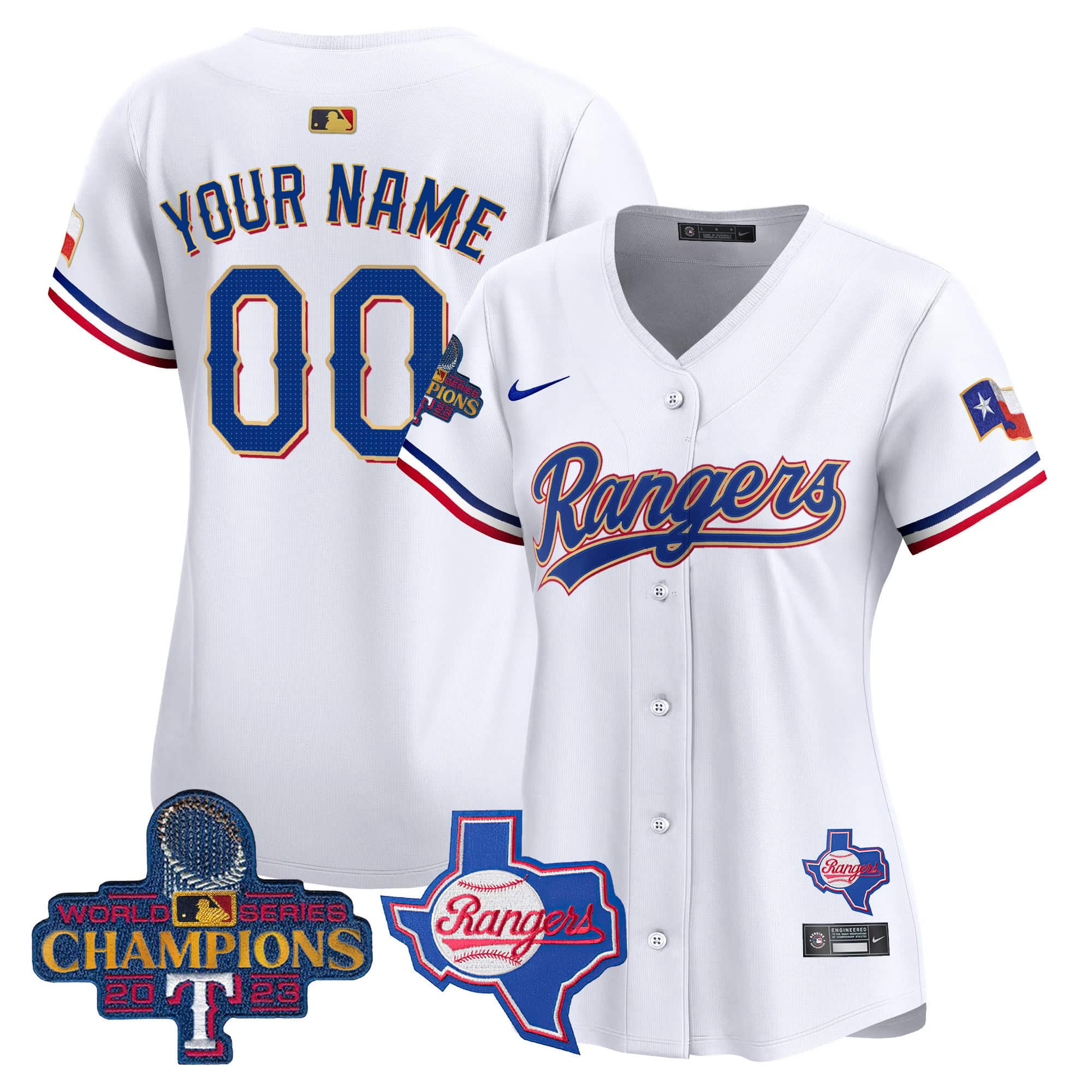 Texas Rangers 2023 World Series Champions Gold Trim Vapor Premier Limited Custom Jersey V2 – All Stitched