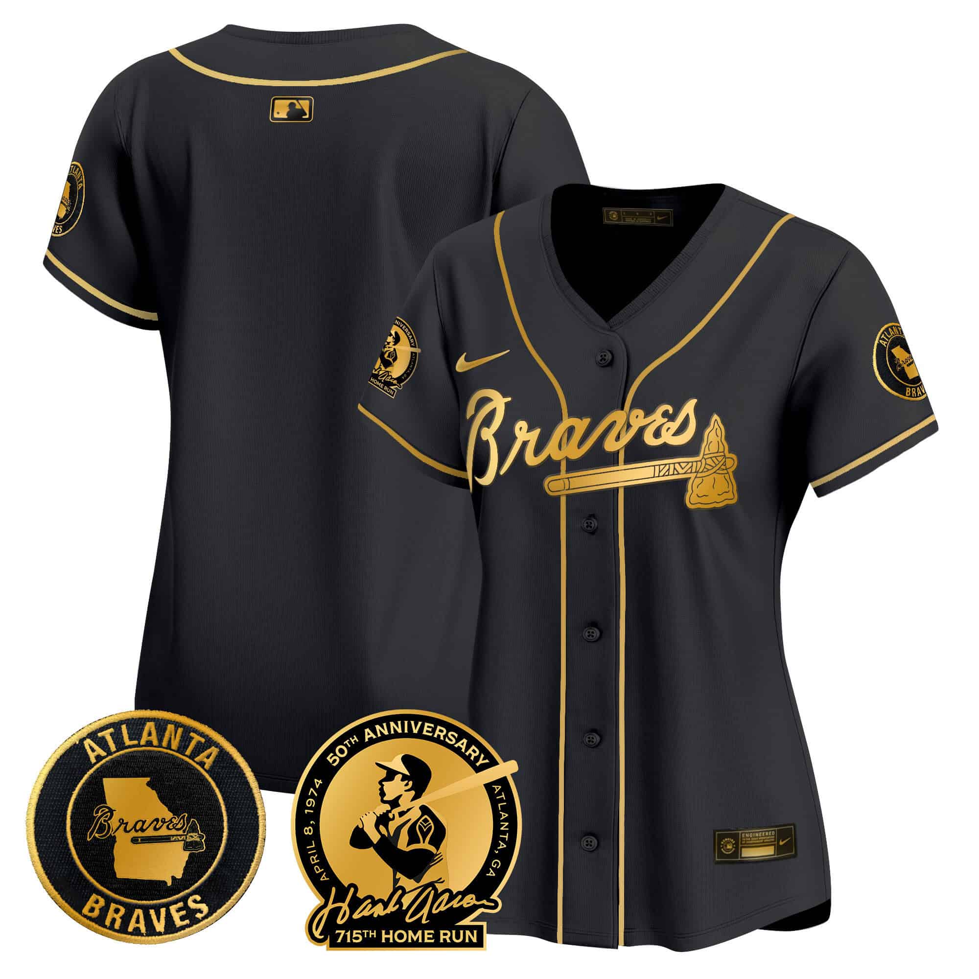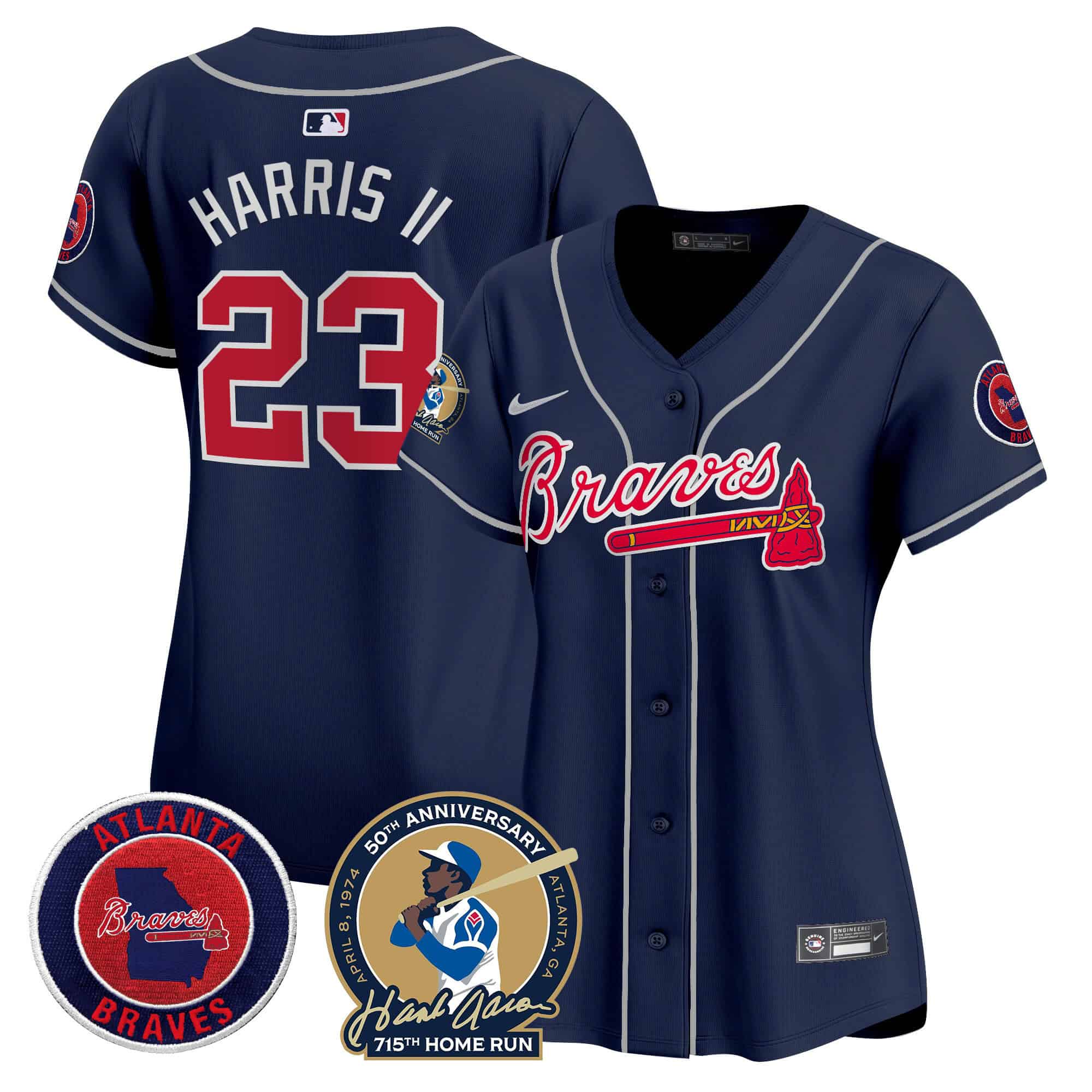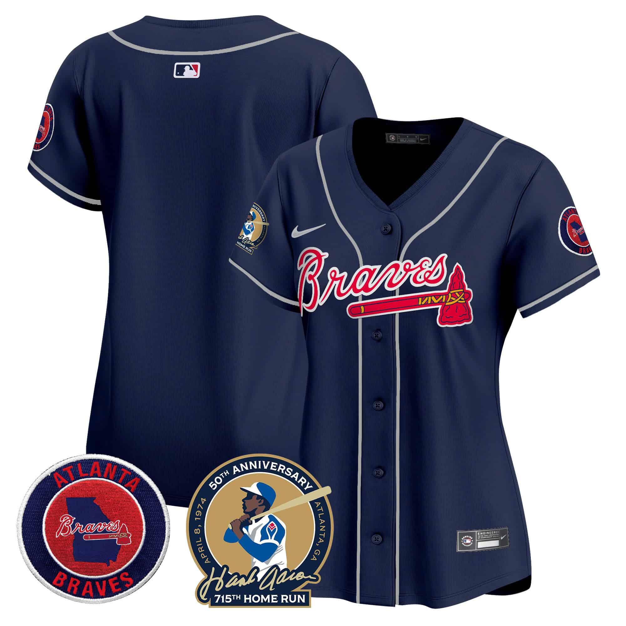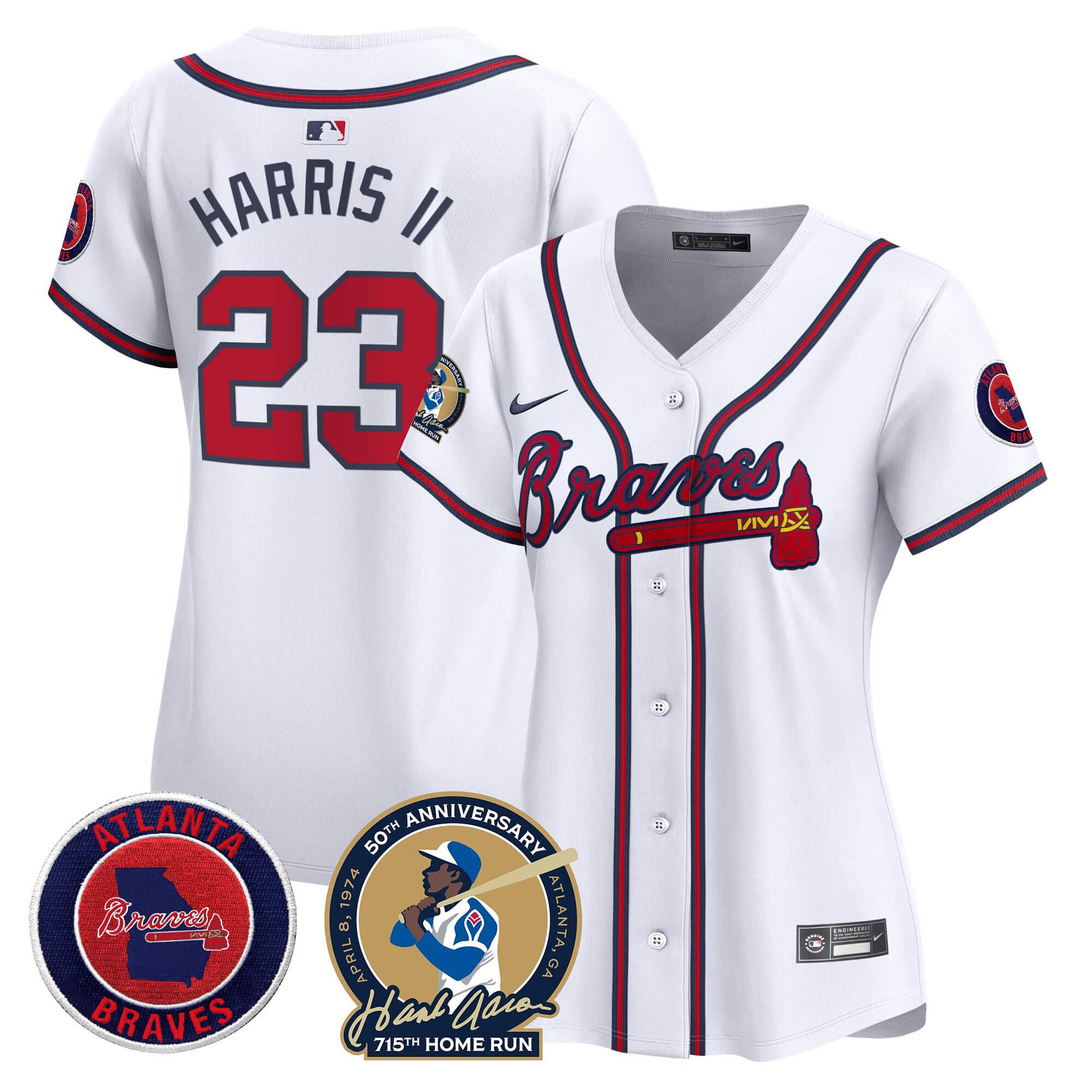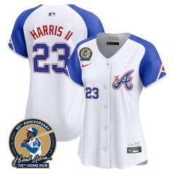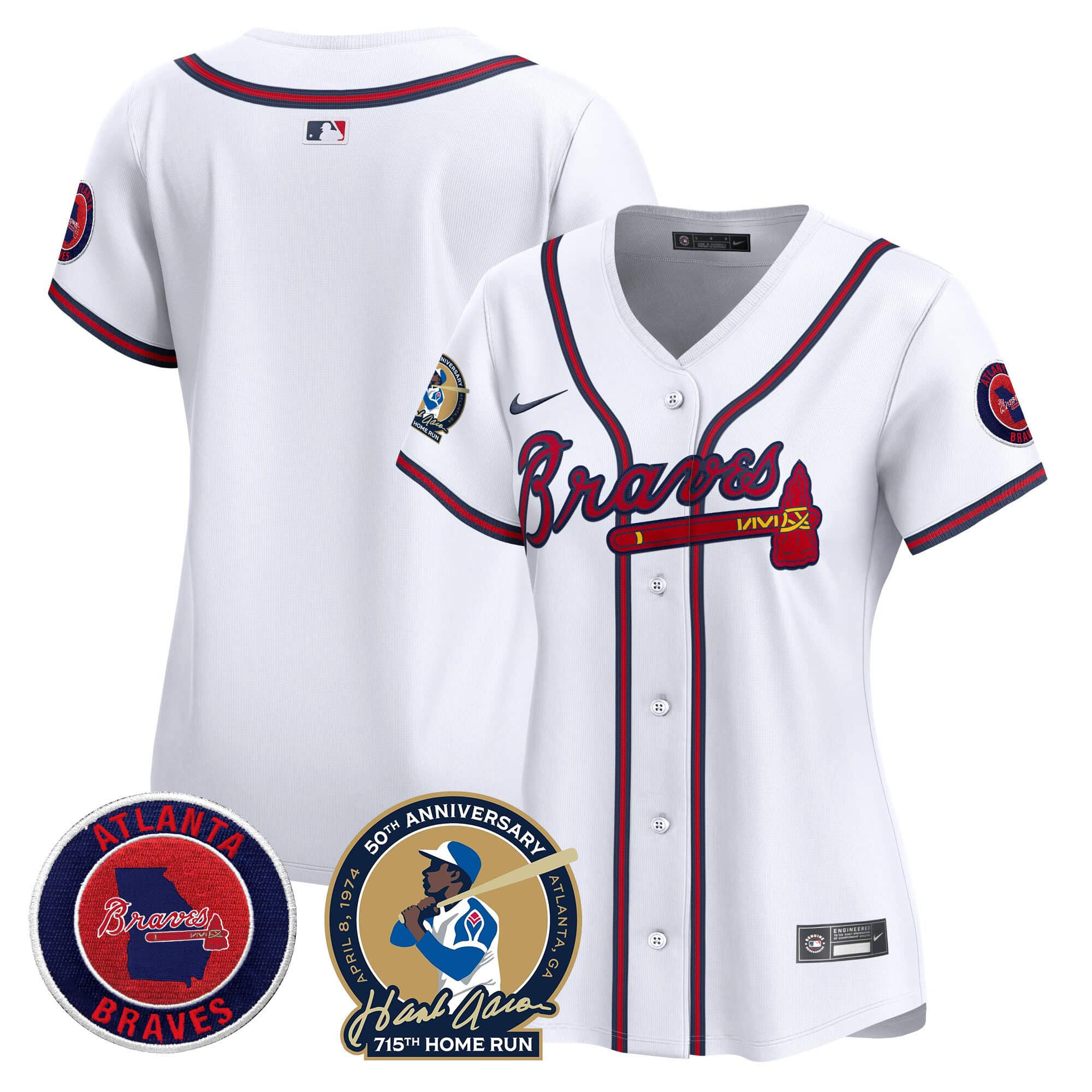 Women’s Atlanta Braves Hank Aaron 715th Home Run Patch Vapor Premier Limited Jersey – All Stitched