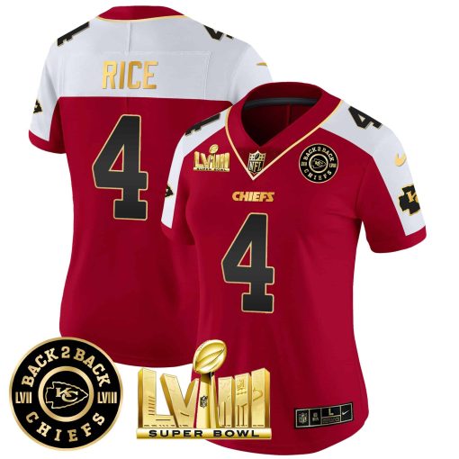 Women’s Chiefs Super Bowl LVIII & Back 2 Back Patch Vapor Jersey V3 – All Stitched