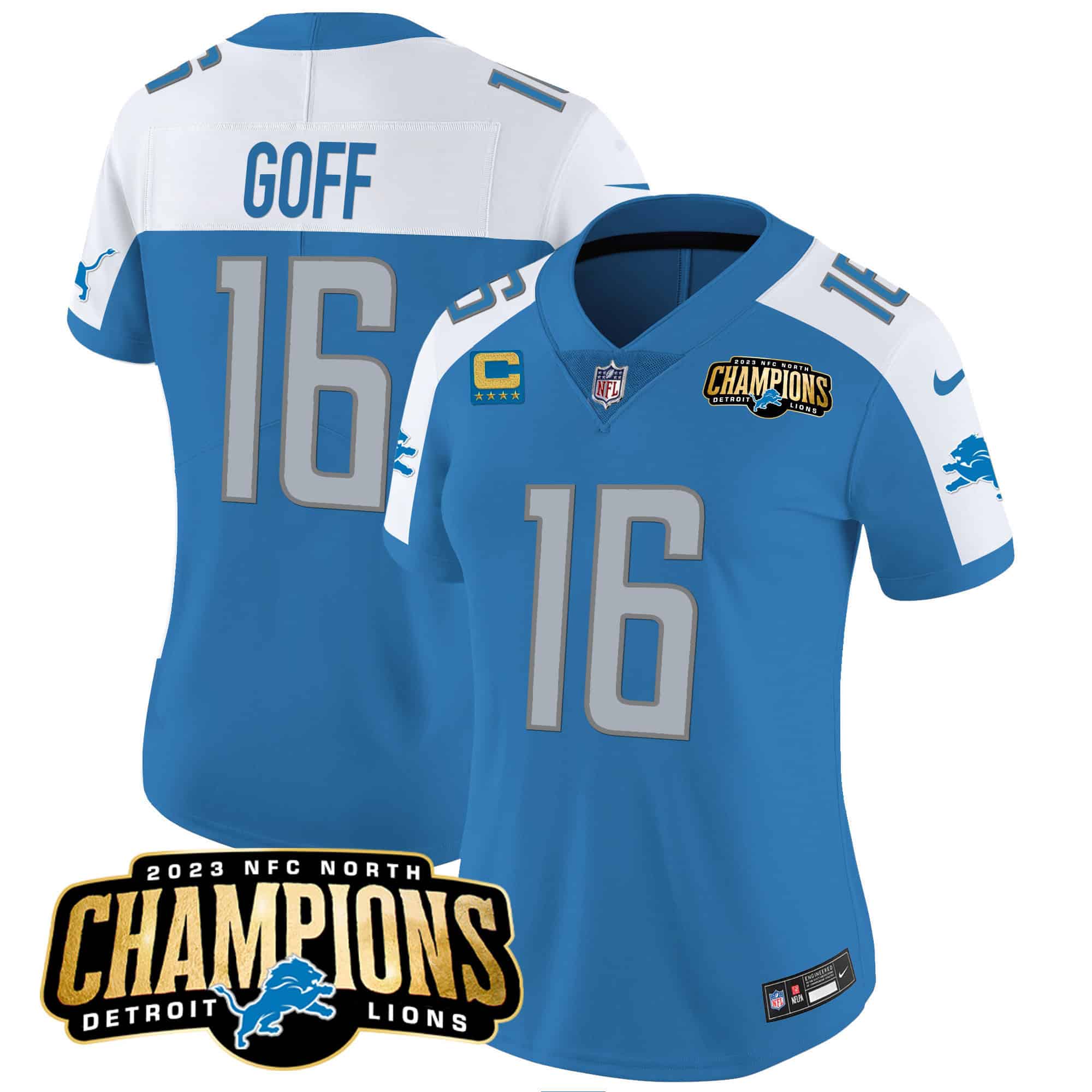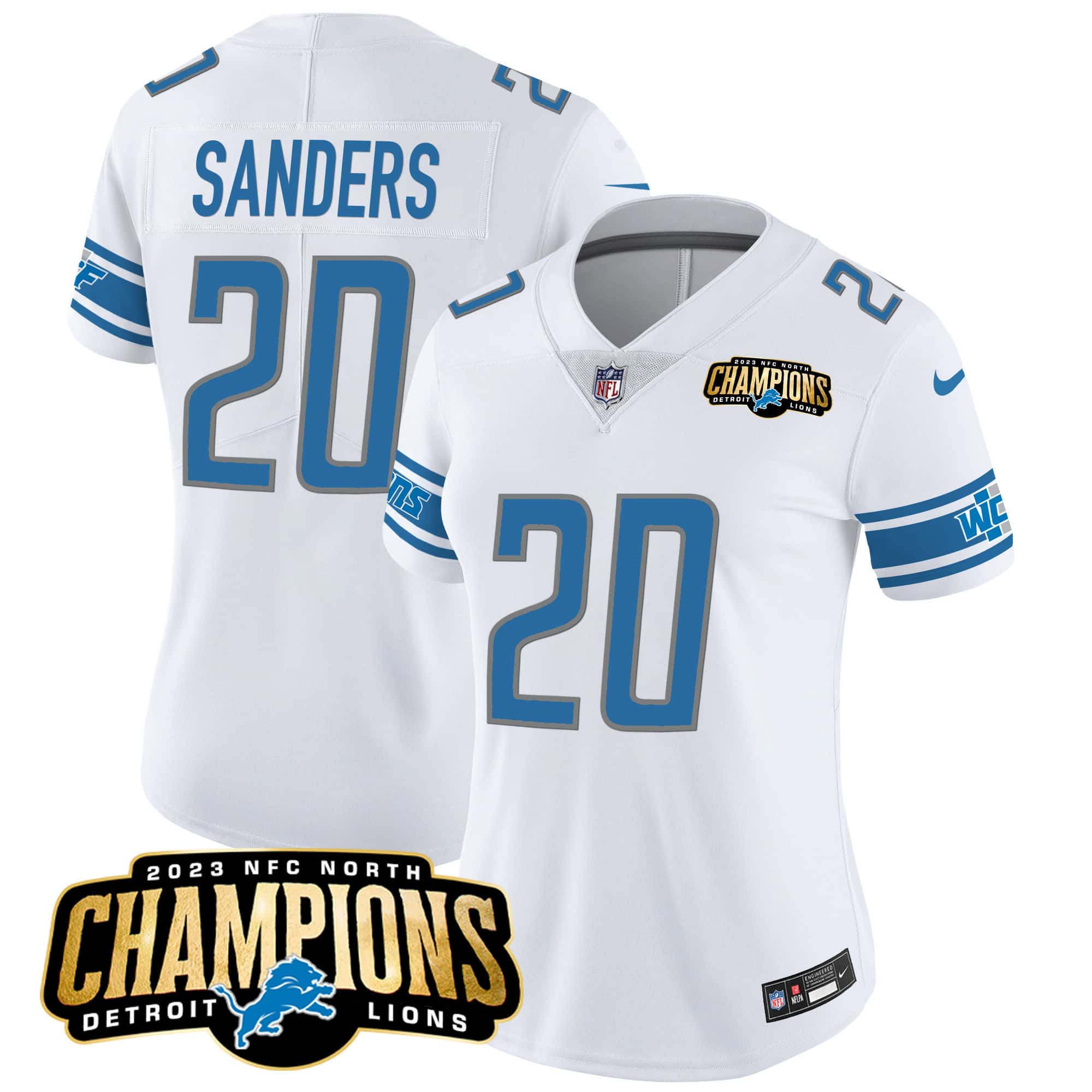 Women’s Detroit Lions 2023 NFC North Champions Patch Vapor Jersey – All Stitched