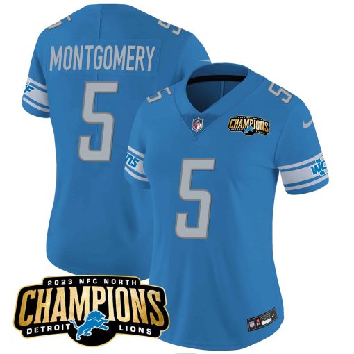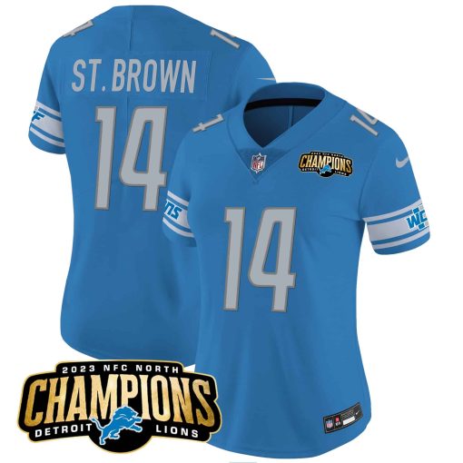 Women’s Detroit Lions 2023 NFC North Champions Patch Vapor Jersey – All Stitched