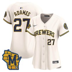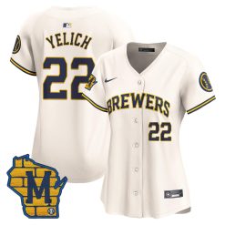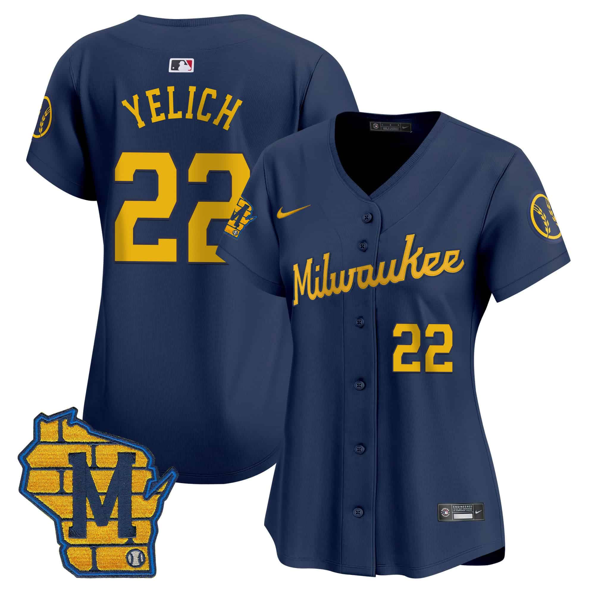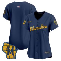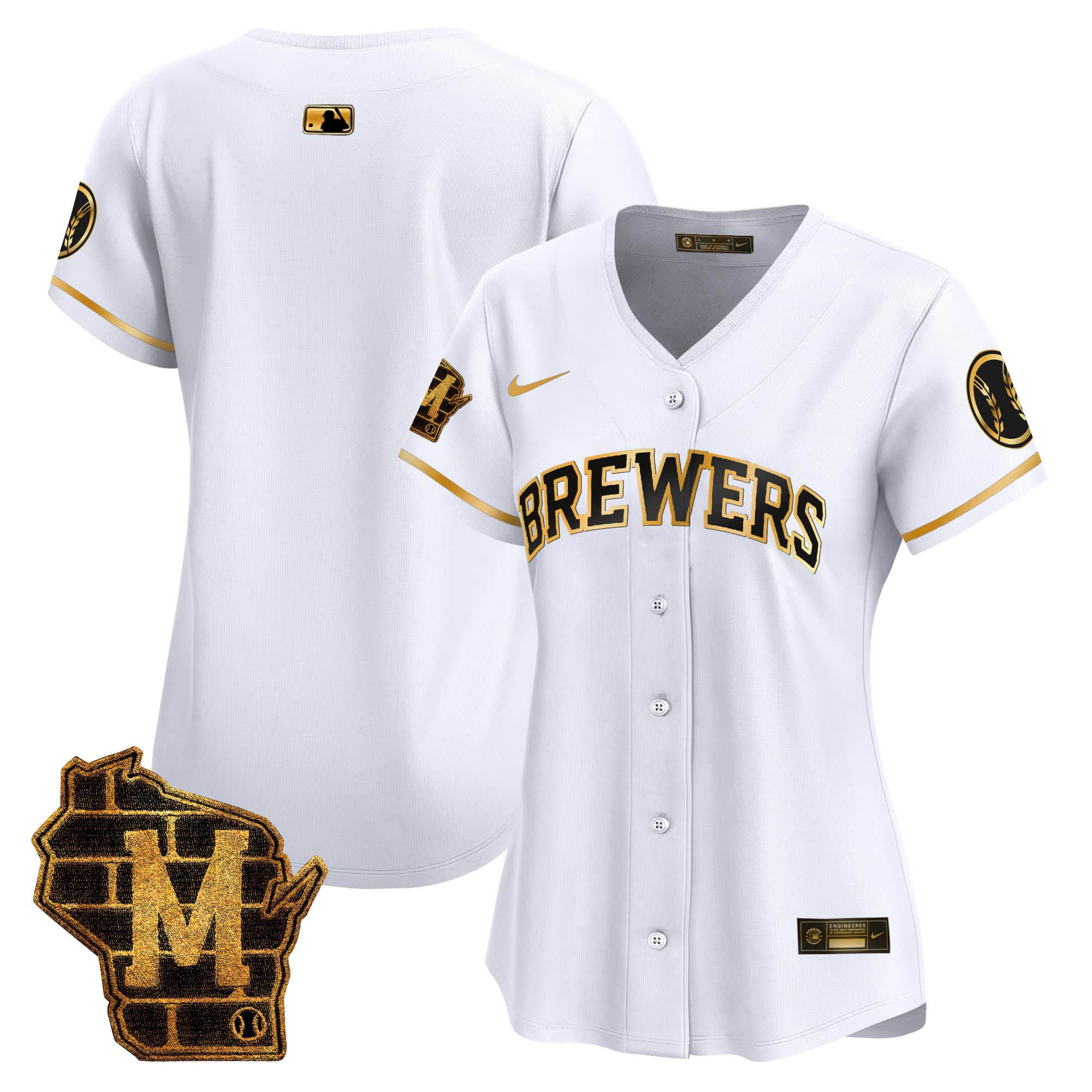 Women’s Milwaukee Brewers Home Patch Vapor Premier Limited Jersey – All Stitched